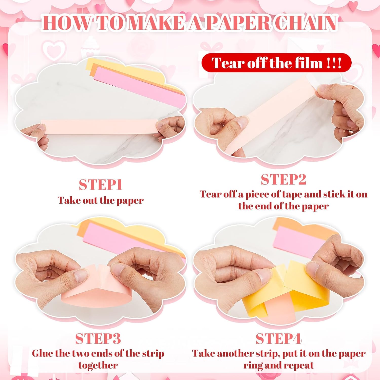 - Worry Less Crafting Experience: crafting has never been easier with our DIY paper chain strips that equipped with sticky tape; You just need to stick the 2 ends of the paper together with the tape, match the color as you like, ring by ring, and you will get an exquisite handicraft, without complex or dangerous procedures; You can quickly turn your ideas into reality without the stress of sourcing for additional crafting materials