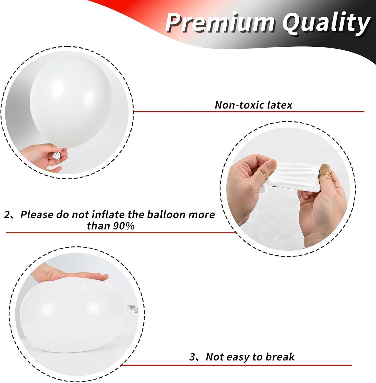 - Precautionary Measures: Upon receiving dark-colored balloons, note that their pre-inflation appearance may resemble black; however, the color after inflation precisely matches your preference. Exercise caution to prevent over-inflation, sun exposure, overheating, contact with sharp objects, and excessive friction.
