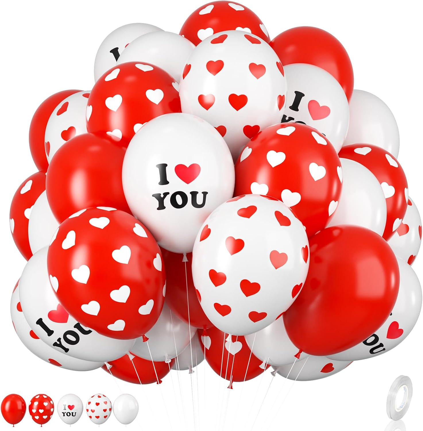 - 12 Inch Valentine's Day balloons: Package content includes 5 pcs i love you balloons, 5 pcs white heart balloons, 5 pcs red heart balloons,10 pcs red balloons,5 pcs white balloons, a balloon ribbon.The color combination meets all your party imagination.