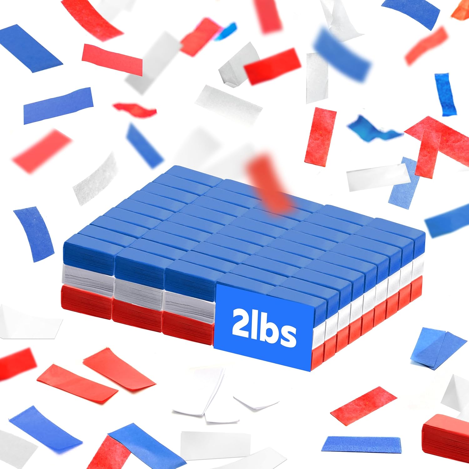 - ๐ RED, WHITE & BLUE - Contains vibrant red, white & blue confetti paper that can be used with our Confetti Launcher Machine with Remote Control.