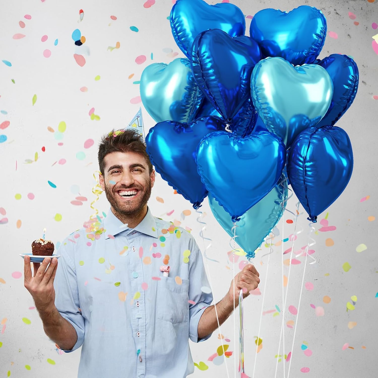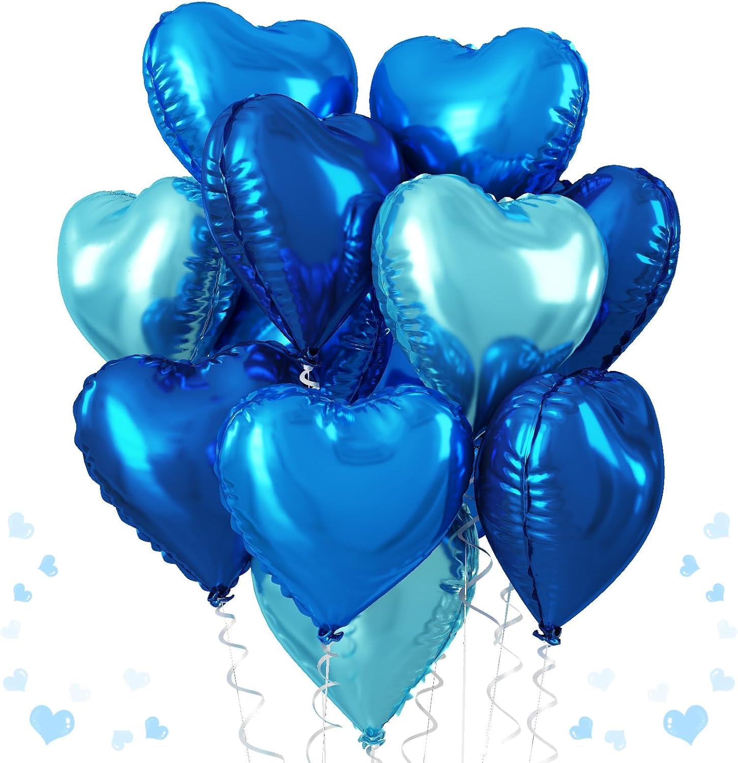 - Blue Mixed Heart Balloons: 9pcs 18 inch heart foil balloons, Includes 3pcs 18inch drak blue heart foil balloons, 3pcs 18inch light blue heart foil balloons, 3pcs 18inch royal blue heart foil balloons and 1pc ribbons.