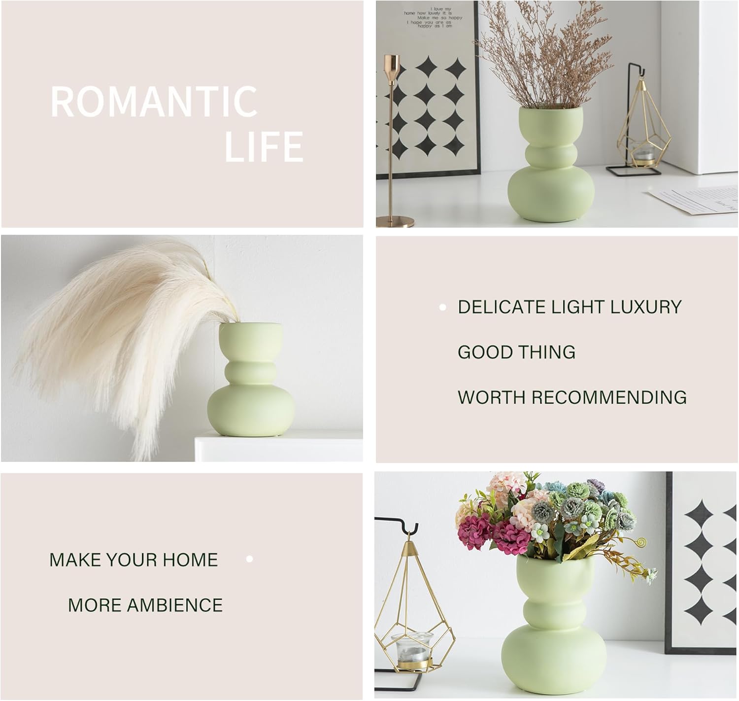 - Ceramic Green Vase for Home Decor - The green vase a captivating piece that merges nature-inspired beauty with contemporary design. This vase with its soft, light green hue, is the perfect complement to the sunny days of summer. Made from the rubber paint material ensures exceptional durability and resistance to wear, making the vase suitable for daily use and cleaning.