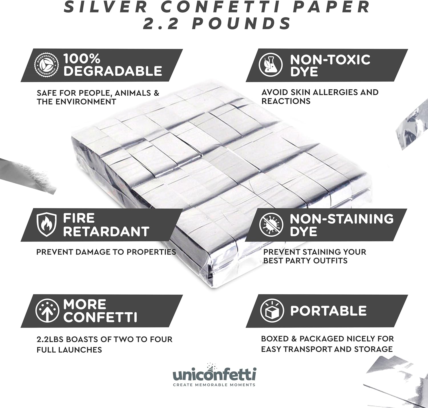 - ๐ SILVER CONFETTI PAPER - Contains vibrant silver confetti paper that can be used with our Confetti Launcher Machine with Remote Control.