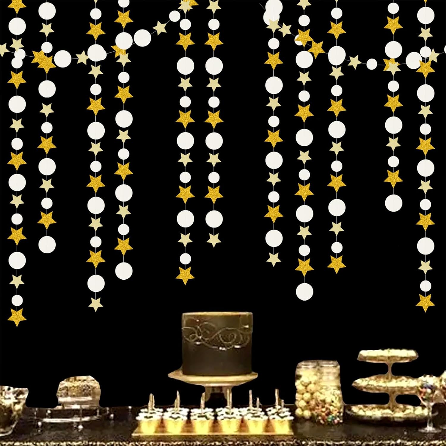 - 【Package Contains】4 sets of the party banner garland,each is 13 feet/ 4 meters long, total length is 52 feet/ 12 meters.Every Banner has 40pcs star and dots,the size is 1.97”