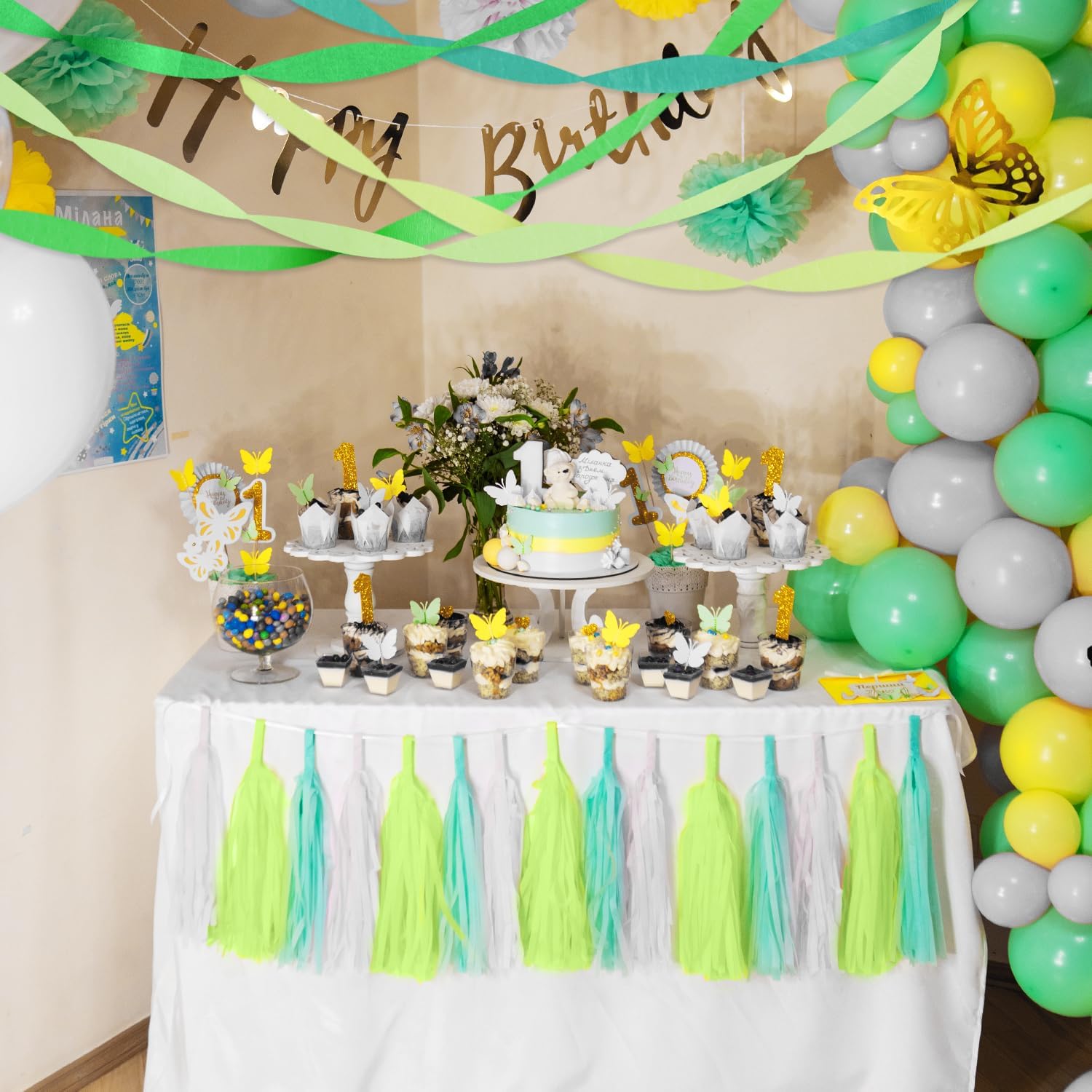 - 【Multiple Applications】Crepe Paper Streamers are an all-purpose decoration for all types of events! Green and White Streamers are great for decorating tables, walls, door frames, and lots more. Green Streamers Party Decorations are suitable for birthday, bachelorette, graduation, Farewell, Disco, Tropical Jungle theme, school ball party, wedding, bridal baby shower garland decoration, party photo props, nursery christening, dinosaur parties, St. Patrick's Day, Arbor Day, Fiesta or Mexican party.