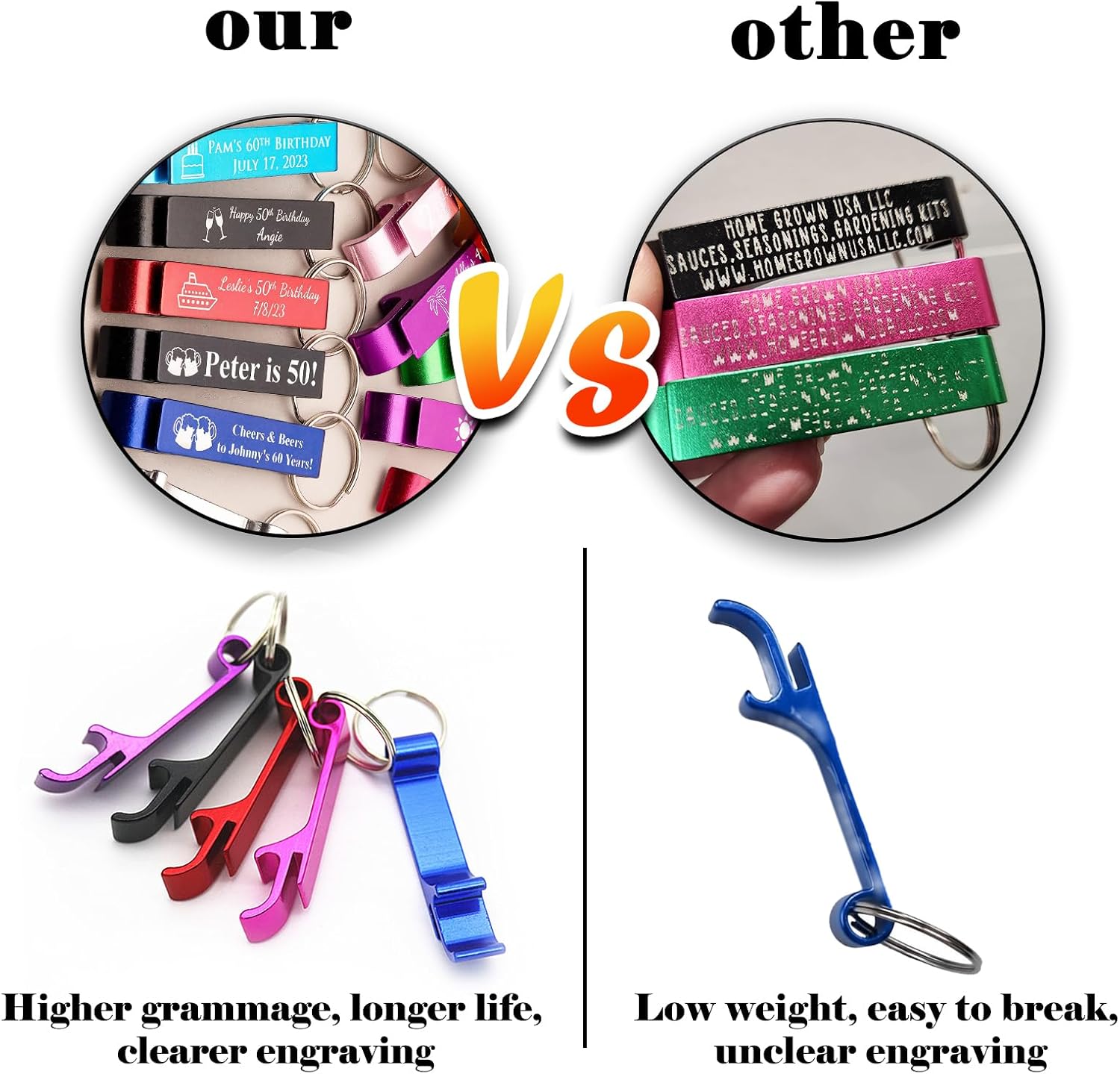 - Multiple use: Not only a practical bottle opener but also a fashionable keychain, providing convenience and versatility.