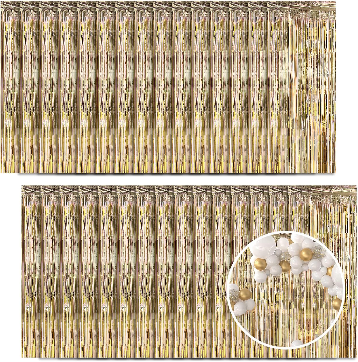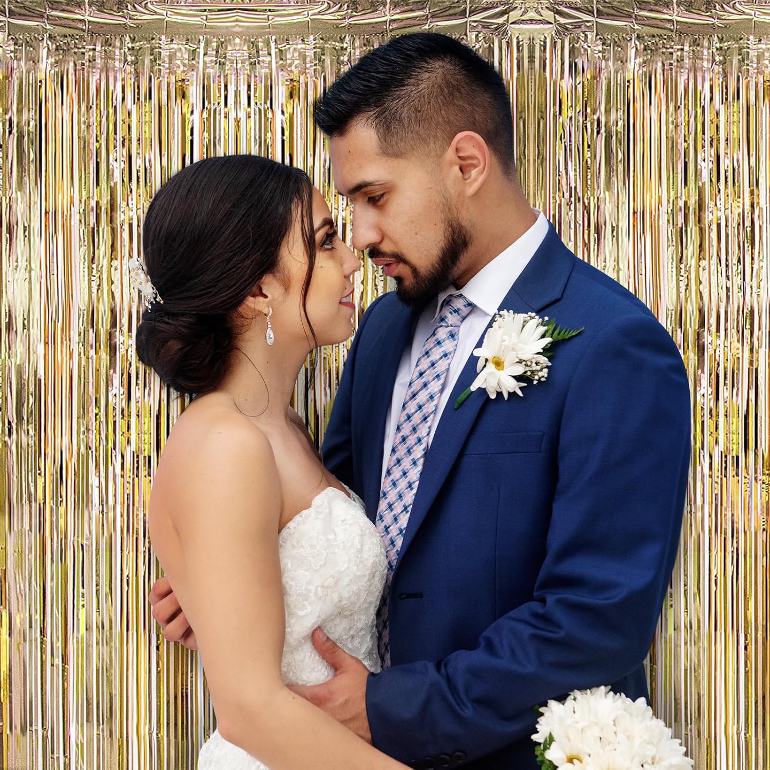 30 Pack Champagne Gold Foil Fringe Curtain Backdrop, 3.3x8.2 Feet Metallic Tinsel Streamer Curtains Photo Booth Props for Engagement/Wedding/Bridal Shower/New Year/Valentine's Day Party Decorations