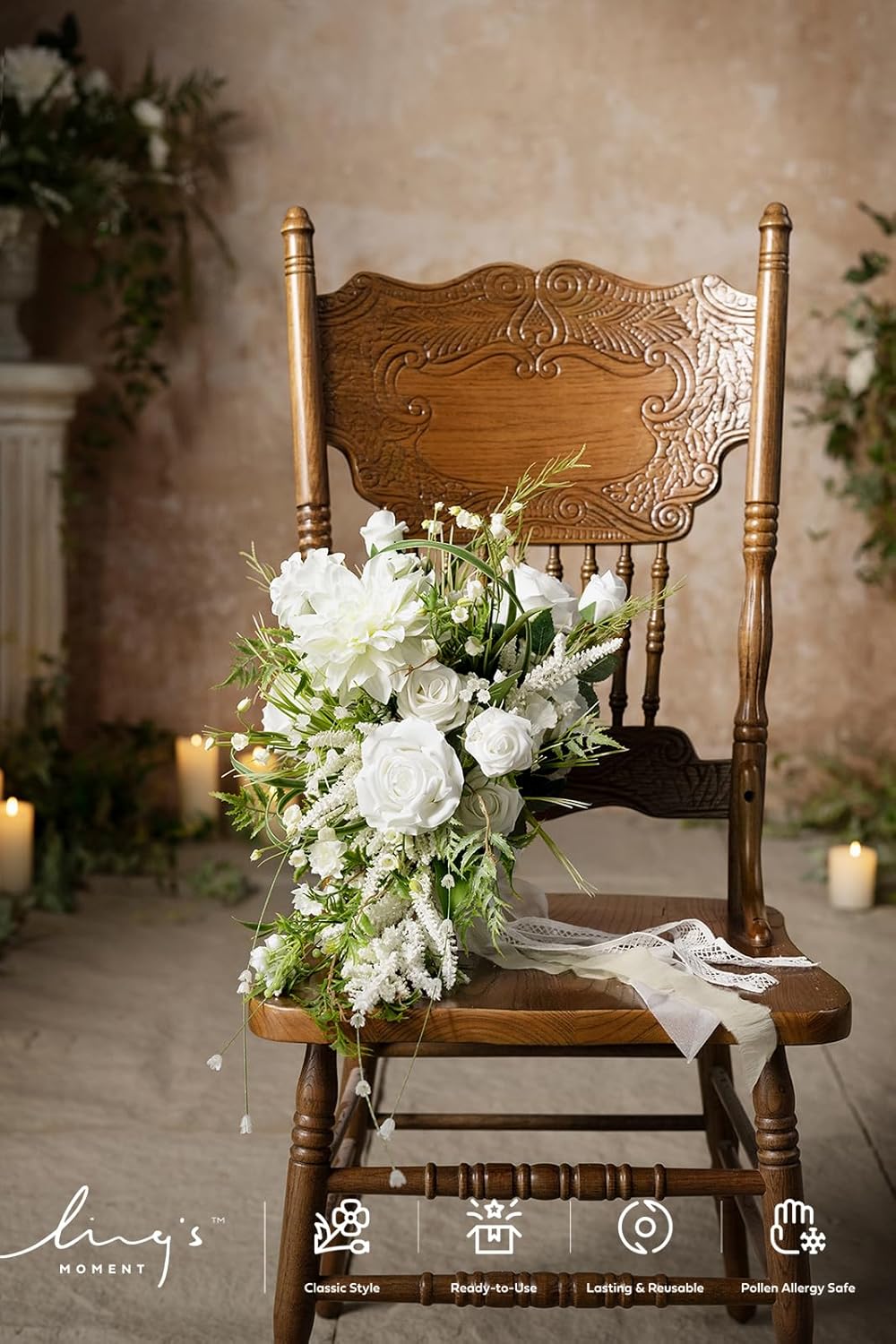 - NEVER WILTED: Compared to fresh flowers, Save over 50% on your budget with this realistic bouquet, crafted from foam/silk flowers White Rose Bud, High-Centered Rose, Gardenia, Lily Of The Valley, Delphinium, Ivory Rose And Dahlia, Astilbe and Light Green Steel Grass Line, Holly Leaves, Polish Grass, Bamboo Peak Grass, Fountain Grass, Needle Grass. These bouquets never wilt, staying beautiful forever, making them the perfect keepsake for your big day.