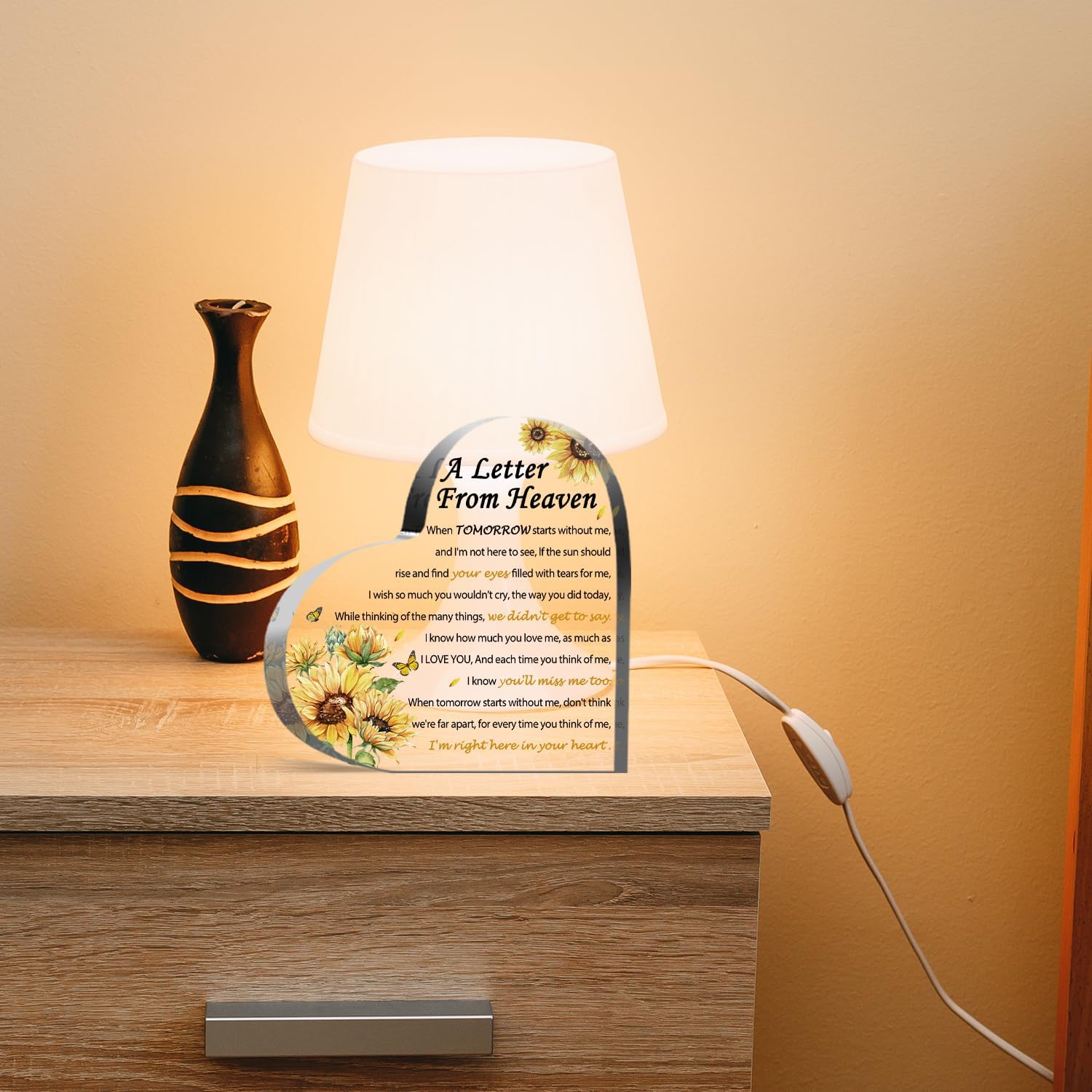 Sympathy Gifts - A Letter from Heaven- Memorial Gift for Loss of Mother Father Husband Son, Acrylic Heart Keepsake,Remembrance Sympathy Gifts (Sunflower)