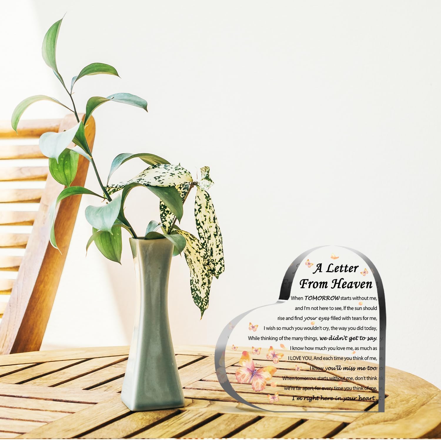 Sympathy Gifts - A Letter from Heaven- Memorial Gift for Loss of Mother Father Husband Son, Acrylic Heart Keepsake,Remembrance Sympathy Gifts (Butterfly)