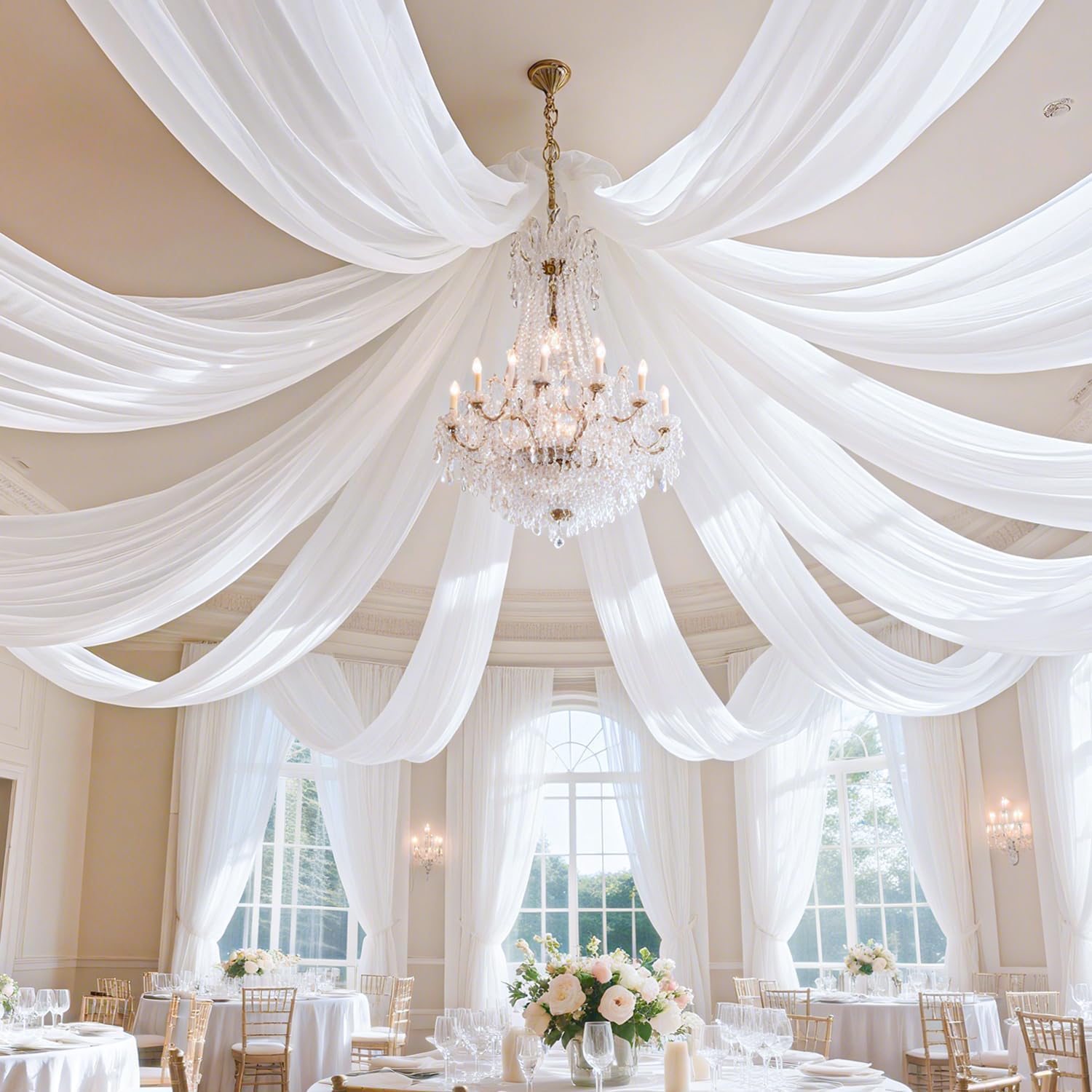 - ✿【Multi-Scenes Uses of Sheer Fabric for Draping】Wedding arch draping fabric is the best choice for wedding ceremony, weding arch, swag decor, home decor, ceiling decor, tent decor, engagement, stage, bridal shower, baby shower, anniversary, banquet, prom, birthday, celebration, graduation, party, reception, photography, photo booth, holiday and special events.