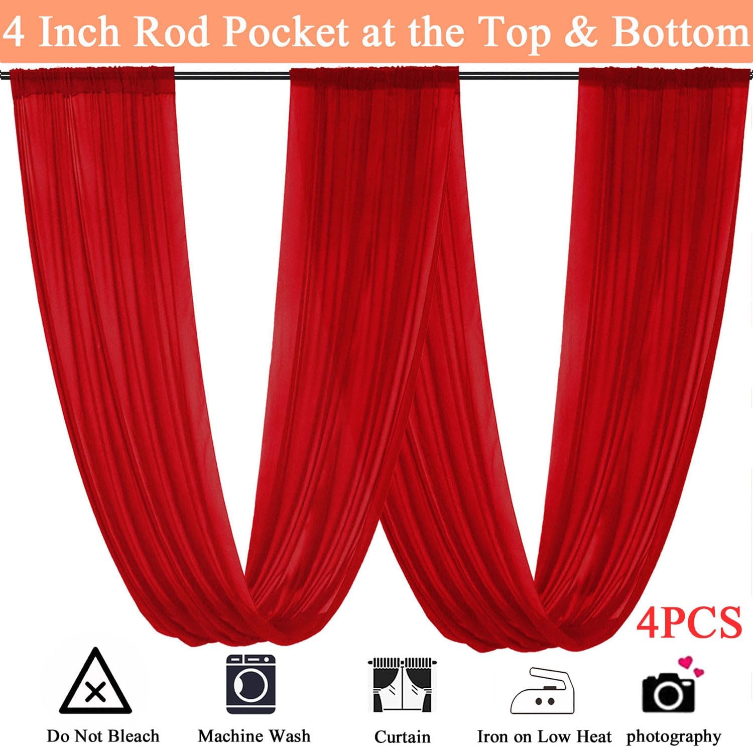 - ✿【Easy to Install of Ceiling Drapes Hanging Kit】Each panel wedding arch drapery have 4 inches rod pocket at the top and bottom, which fits most of rod or pole. This ceiling covering fabric nice for draping or hanging, creating beautiful folds, add charming look to wedding ceremony decor. Perfect fabric for window scarves and canopies.