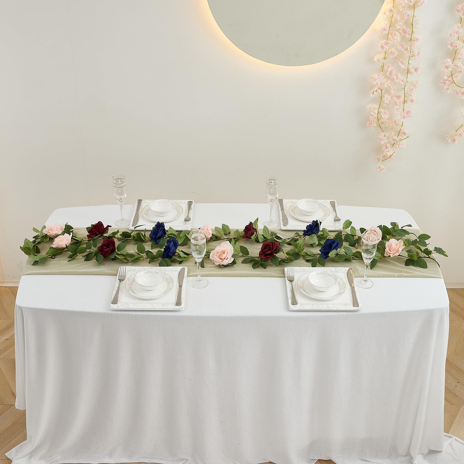 Artificial Rose Garlands Rose Vines Leaves Banners Hanging Floral Garland Fake Rose Flower Vine for Wedding Arch Ceremony Home Garden Outdoor Party Wall Decorations
