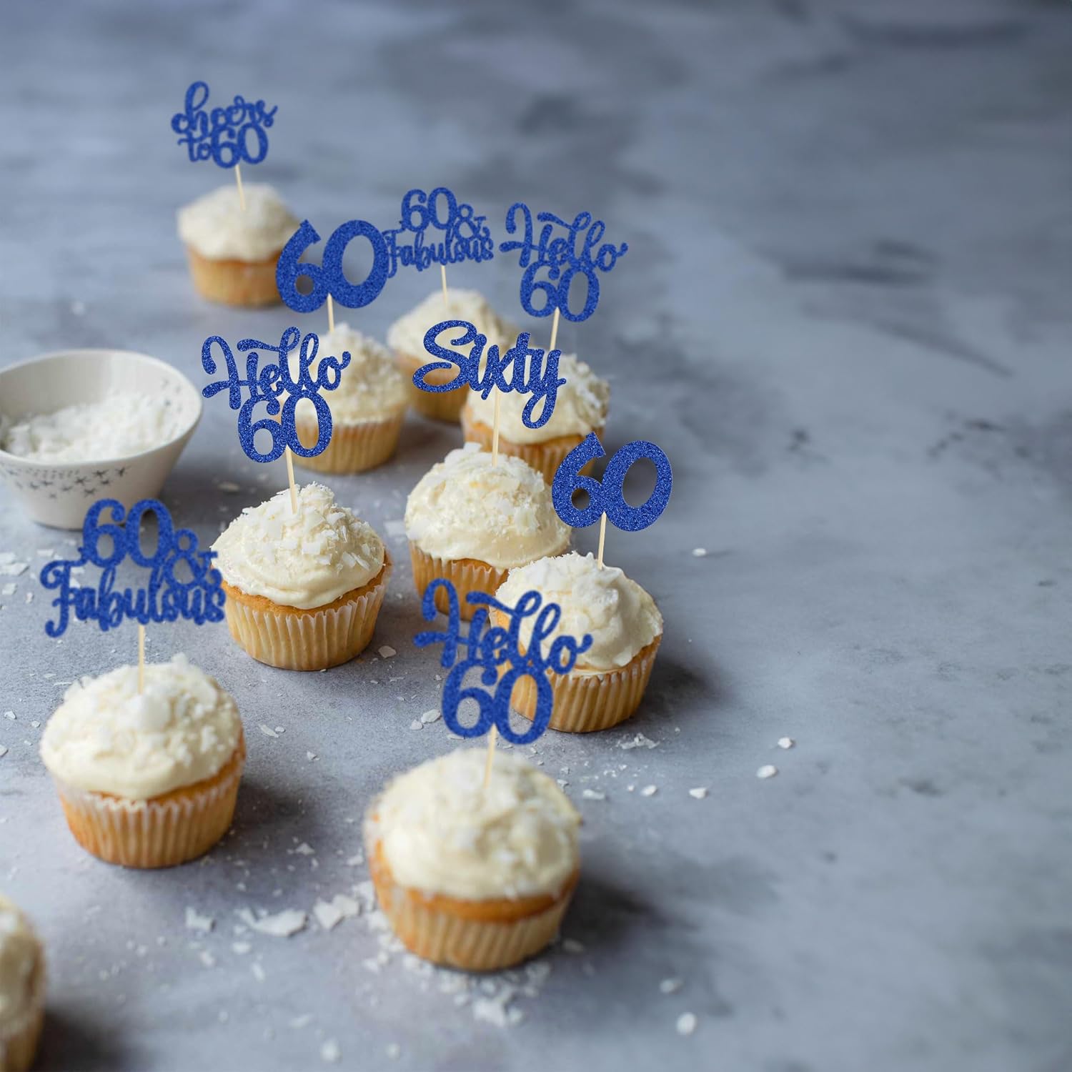 - -Package included: 24Pcs Happy 60th Birthday Cupcake Toppers. Comes with assembled, so you can insert into your cake directly, which make your cake more interesting.