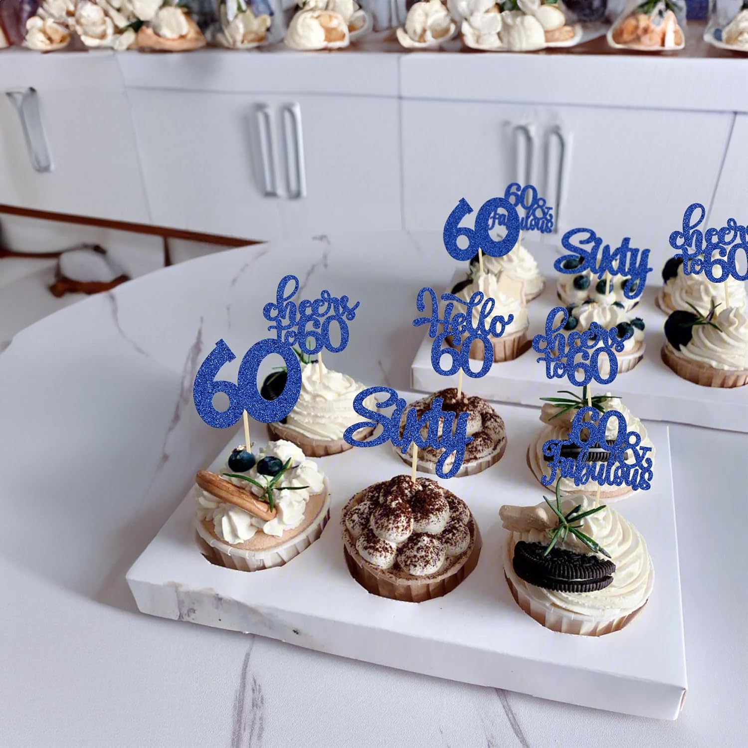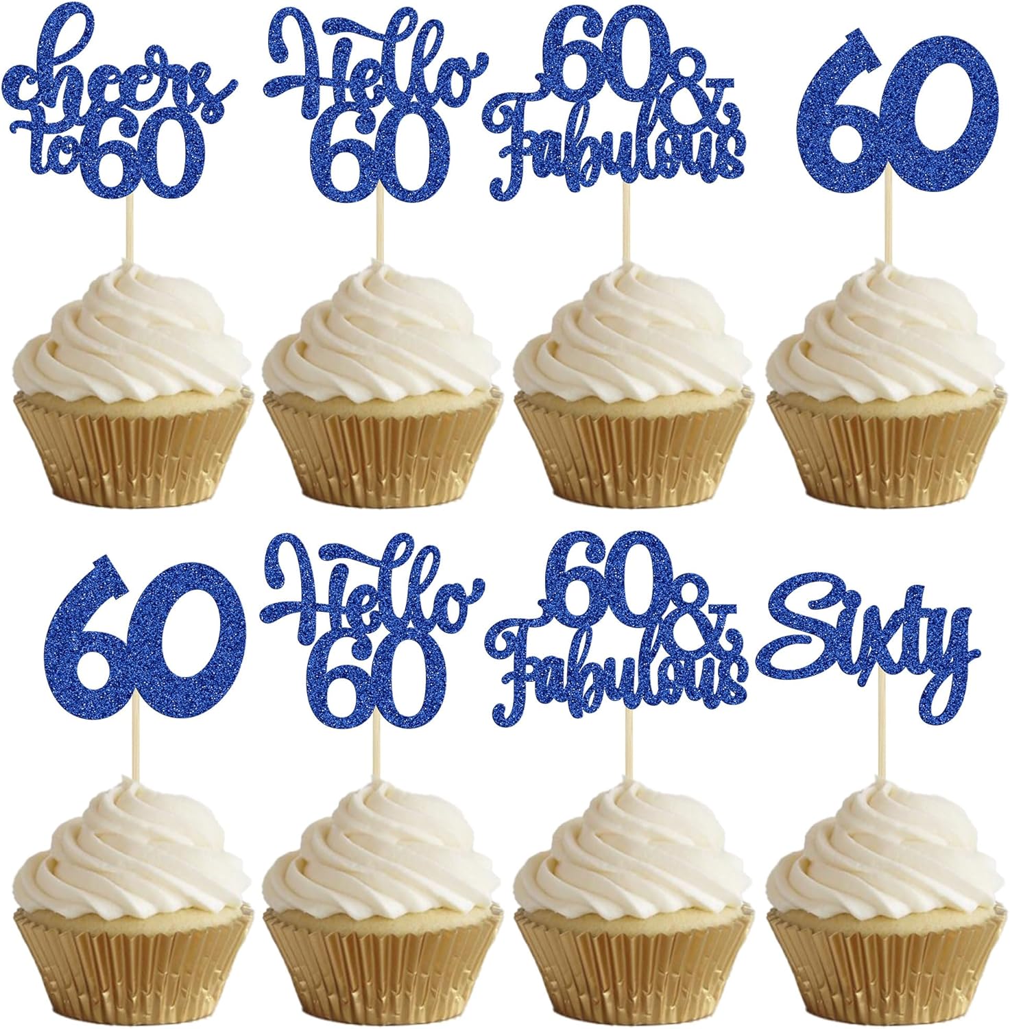 - -These Happy 60th Birthday Cupcake Toppers are so cute and good for happy 60th birthday theme party, cheers to 60 years theme party, 60 fabulous theme party, happy 60th birthday anniversary theme party cake decorations. They can make your cupcake more attractive and bring the fun to your party. You can also apply them for ice cream, fruits, cookies and other desserts.