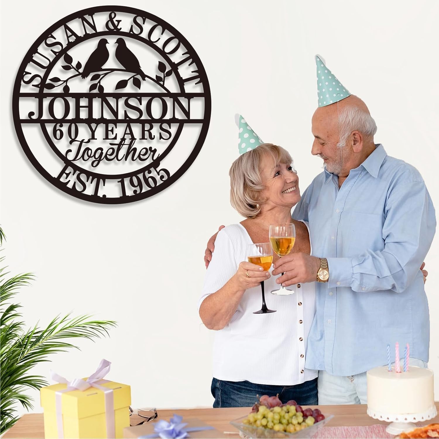 Personalized Wedding Anniversary Sign Gifts, Custom 50th 40th 65th 60th 25th 70th Anniversary Metal Sign, Wedding Gifts for Couples, Custom Name Sign, House Warming Gifts New Home