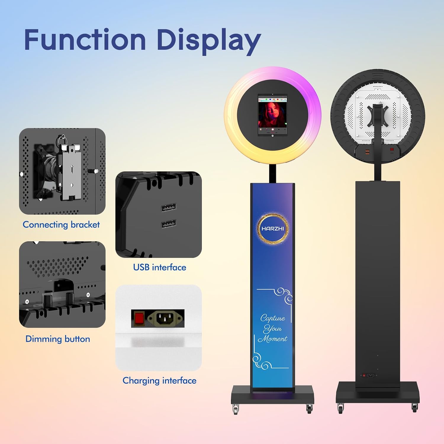 HARZHI Portable Photo Booth Compatible with Ipad, Large Lightbox Ipad Photo Booth for Christmas Wedding Party Provide ChackTok Software APP VIP, Free Custom Logo, Flight Case