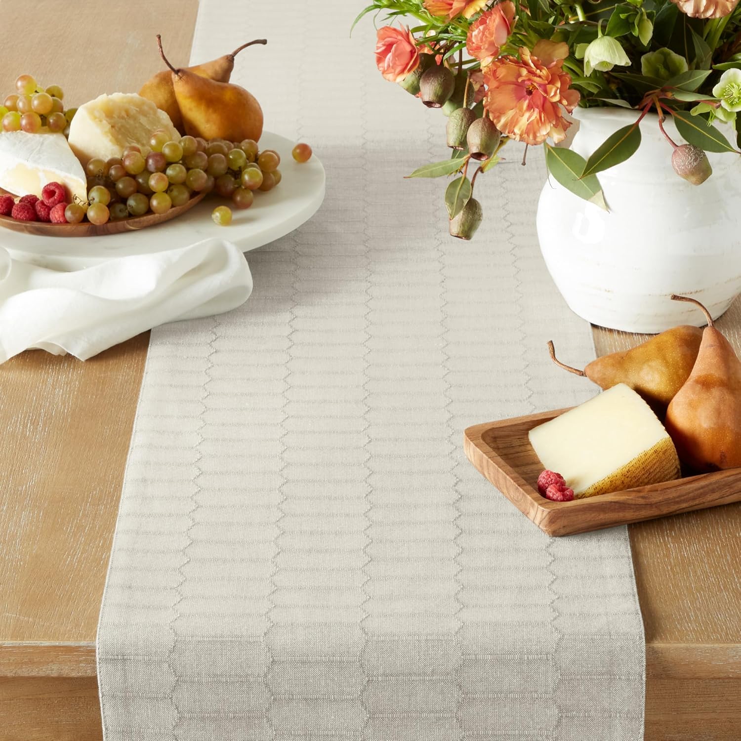 Martha Stewart Honeycomb Modern Farmhouse Reversible Table Runner, Natural, 15"x72"