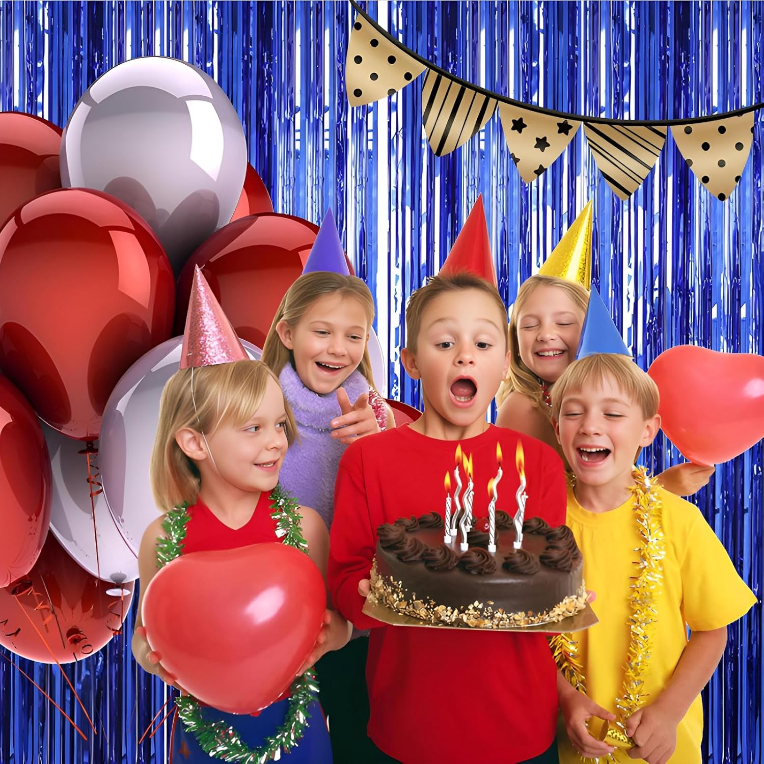 Keyali 2 Pack 3.3 * 8.3 ft Foil Curtain Metallic Tinsel Fringe Curtains Photo Booth Props Backdrop for Birthday Wedding Engagement Baby Shower Christmas Holiday Celebration Partyl,Blue