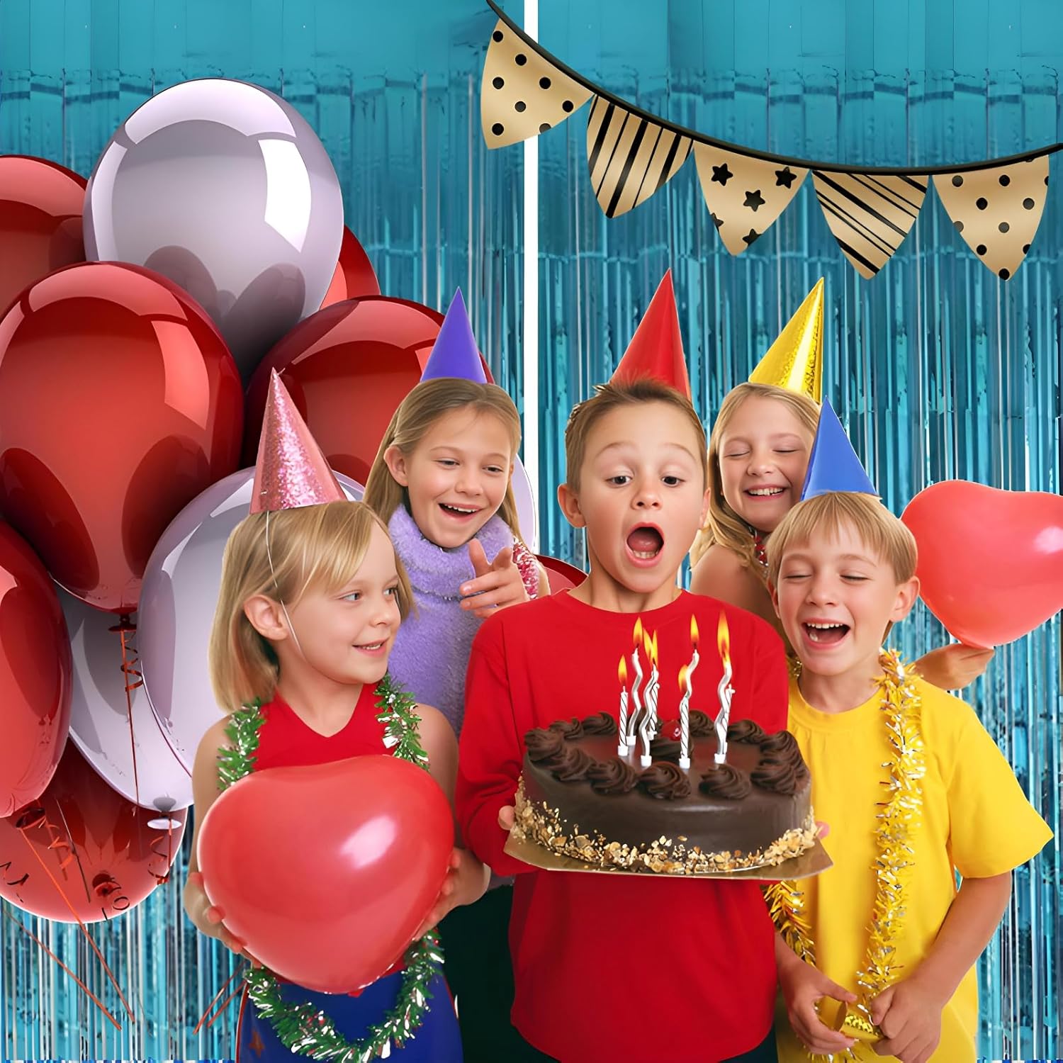 - Pair with other party decorations: Tinsel backdrop curtain can be paired with LED lights, balloons, banners, wreath, garlands, swirl streamer, tissue paper pom poms.