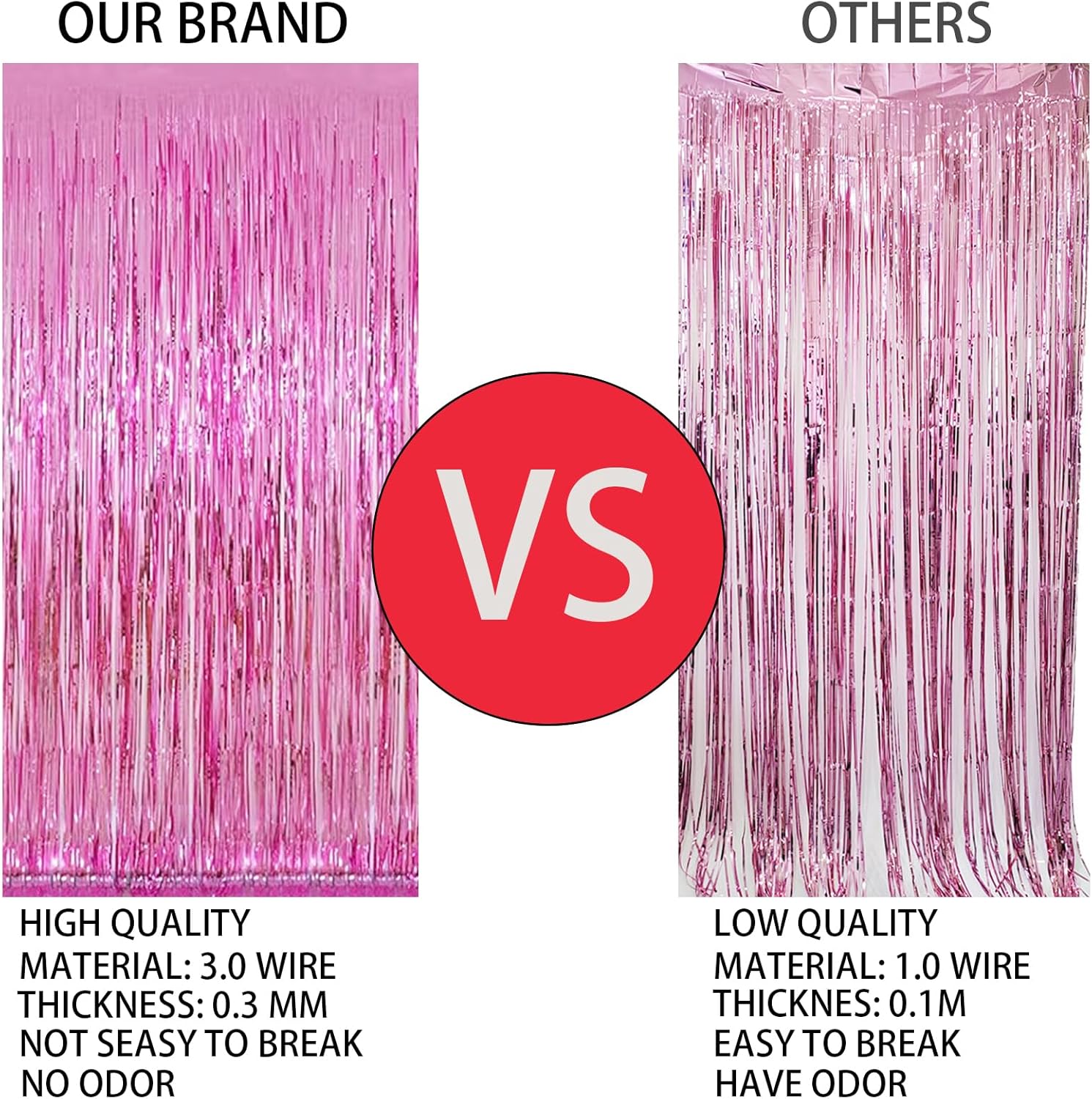 - Reflective effect:Foil fringe curtains have a thickness of 0.4mm, making them thicker and less likely to wrinkle or crease, resulting in a durable and long-lasting decoration. Additionally, Keyali Foil fringe streamers are made of sturdy and flexible PET material, making them resistant to breaking or tearing.Metallic streamers come in a range of beautiful colours with a shiny, iridescent, and reflective surface that creates an eye-catching and mesmerising effect!