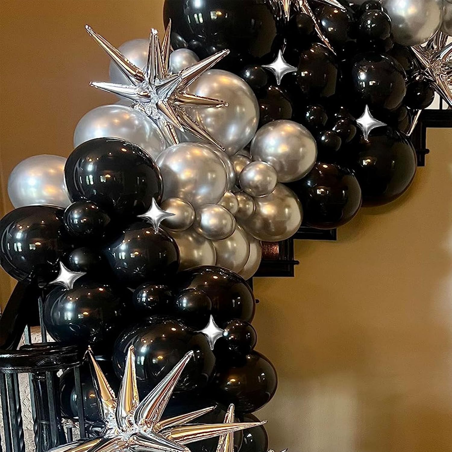 6 Pcs Explosion Star Foil Balloons- 12 Point Star Balloons,Silver Spike Balloons and 10Pcs Four Pointed Star Balloos for Party Supplies Christmas Birthday Wedding Photo Booth