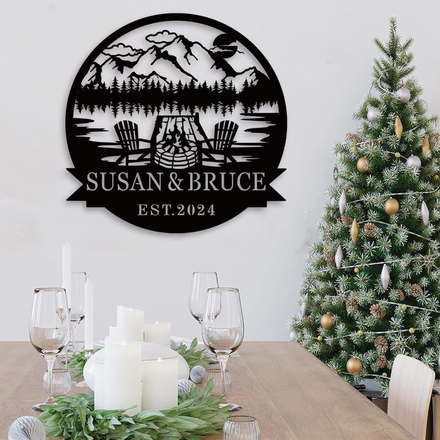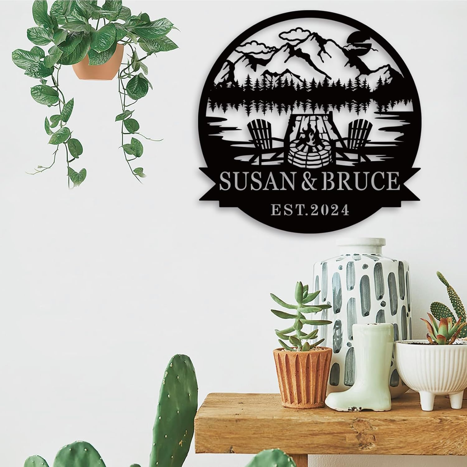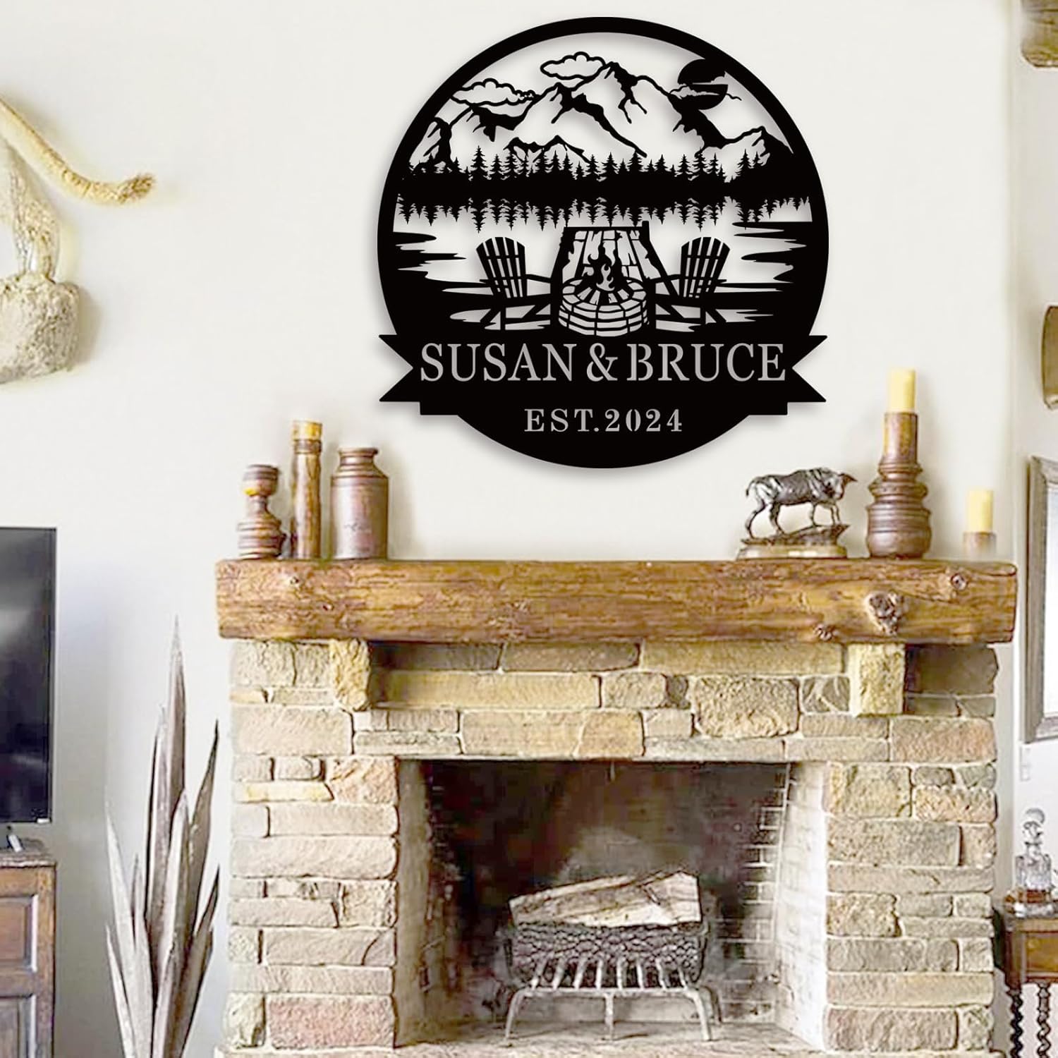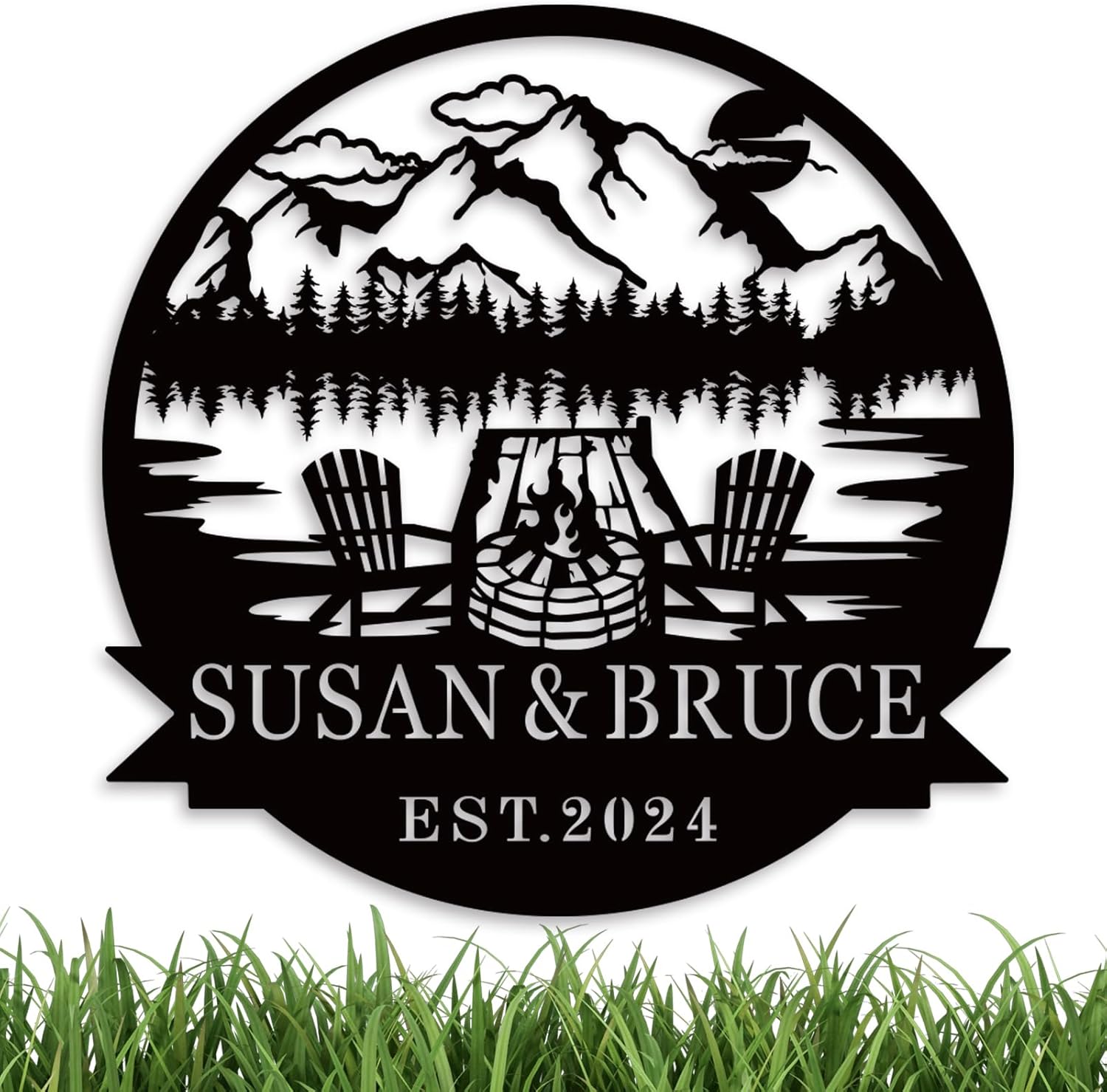 Custom Metal Family Name Sign, Custom Campfire Metal Name Sign, Campsite Monogram Forest Sign,Campsite Sign, Personalized Camping Gifts Fire Pit Sign, Camper Lover Gift, Design 183