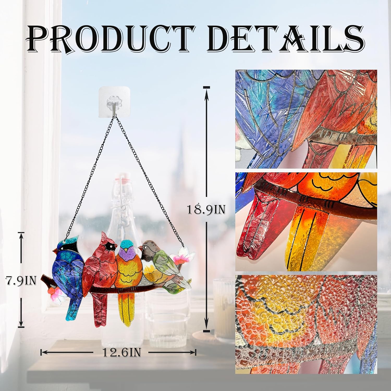 - Captivating Bird Design:The detail on this piece of stained glass art is exquisite, There are 4 birds on the branch, how each bird is painted with a different color. The colors are bright and the birds are cute. This sun catchers indoor window a touch of nature's grace to window .Handmade gifts specially made for your mon, children, friends, sisters customers and colleagues, etc.