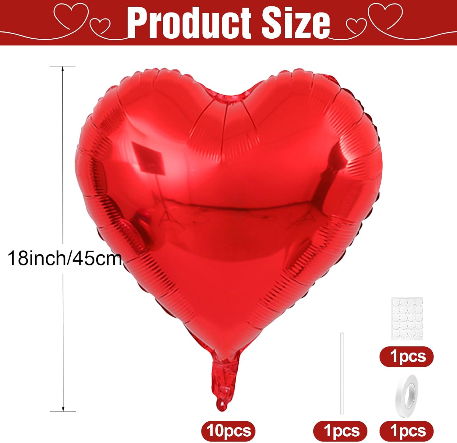 - 10PCS HEART BALLOONS:You will get 10pcs 18Inch red heart balloons,ribbon.The red heart shaped balloons suitable for any party, can leave unforgettable memories for the guests attending the party, 18Inch is large enough to better embellish your party.