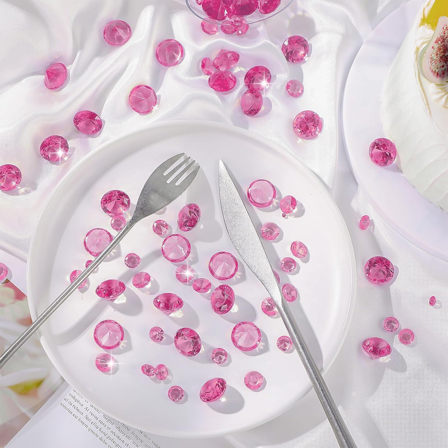 Hicarer 800 Pieces Diamond Decorations Acrylic Diamond Table Scatter Crystals for Table for Vase Fillers Party Decorations(20, 12, 10, 6, 3mm,Pink)