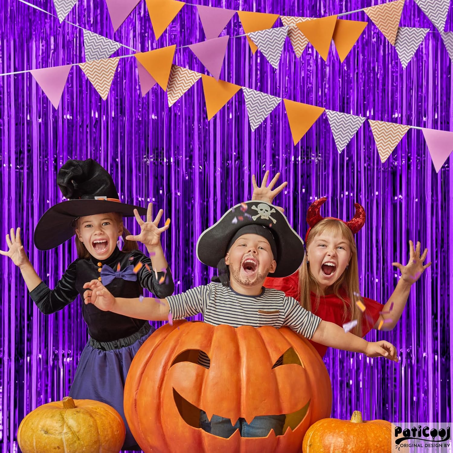 Purple Streamers Party Decorations - Thicken 4 Pack 3.2 x 8.2 FT - Purple Tinsel Foil Fringe Curtains, Photo Booth Props Backdrops for Birthday, Halloween, Graduation Party Decorations
