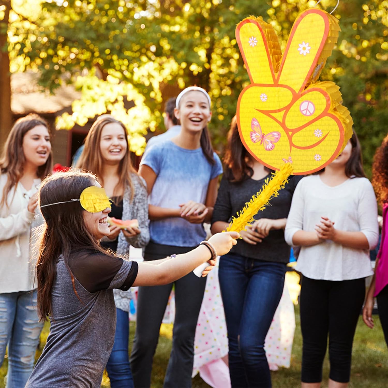 - You Will Get - you will get 1 piece hippie pinata (size is 14.9x10.6x3.2inch) with hanging loop, 1 piece blindfold, and 1 piece pinata stick. Designed in the shape of a classic, the bright colors collide together to bring joy to your two groovy decorations girl, leaving you with deep and unforgettable memories