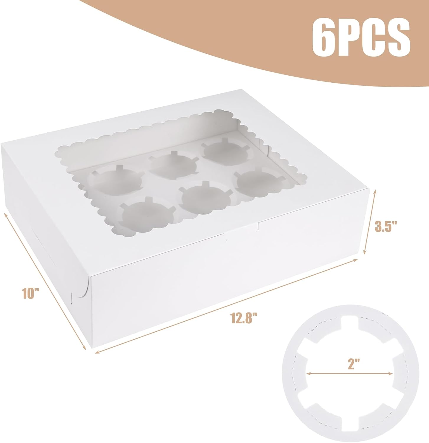 - SUPER VALUE BUNDLE - This package includes 6 cupcake boxes and 6 cupcake holder inserts. When assembled, each box measures 12.8 x 10 x 3.5inch, and each cupcake holder can accommodate 12 cupcakes.
