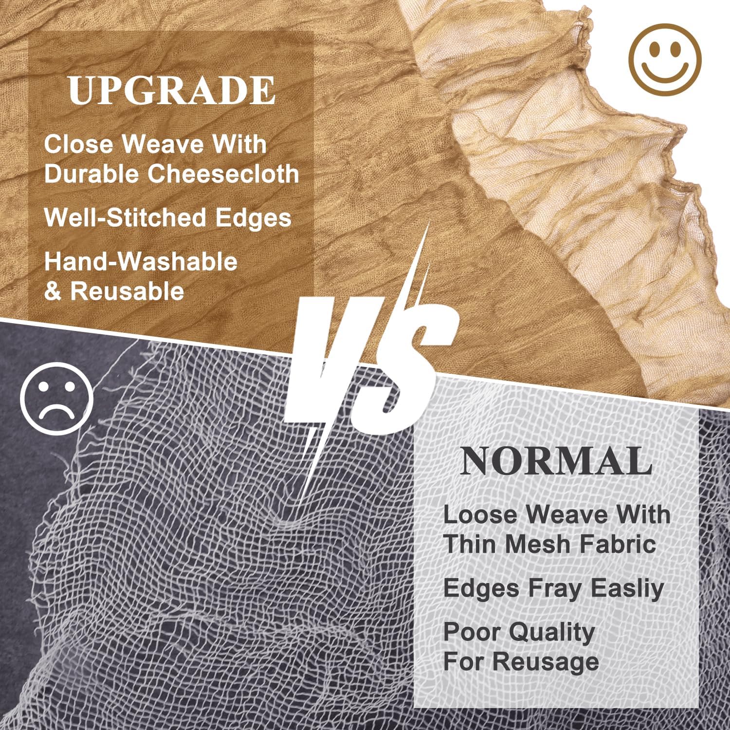 - 【Cheesecloth Table Runner】 Size: 35" W x 120" L. You will get 4 pieces 10FT length cheesecloth table runner. The sheer rustic table runner is long enough to span a large table and drape gracefully across the table. It will gently sway in the wind, adding a romantic atmosphere to your occasion. These eye-catching gauze table runners are ideal for arranging an elegant, stylish tablescape.