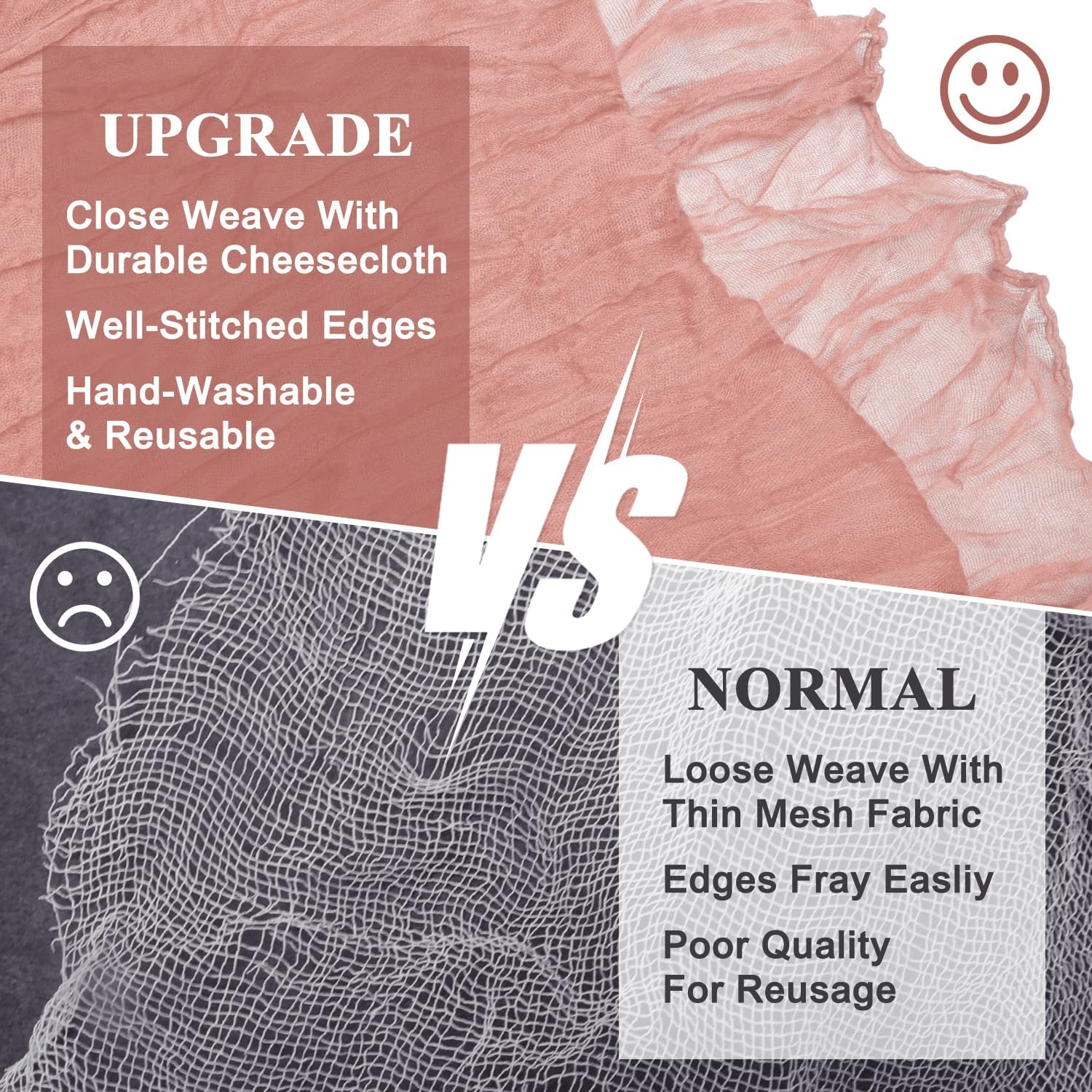 - 【Cheesecloth Table Runner】 Size: 35" W x 120" L. You will get 4 pieces 10FT length cheesecloth table runner. The sheer rustic table runner is long enough to span a large table and drape gracefully across the table. It will gently sway in the wind, adding a romantic atmosphere to your occasion. These eye-catching gauze table runners are ideal for arranging an elegant, stylish tablescape.