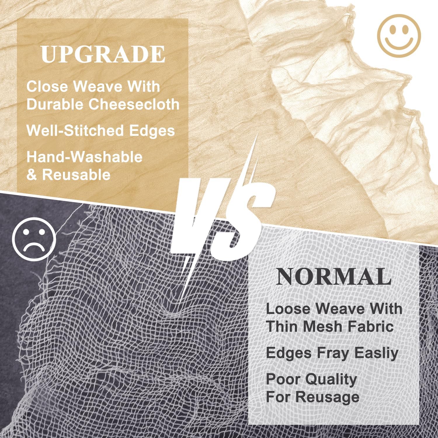 - 【Cheesecloth Table Runner】 Size: 35" W x 120" L. You will get 12 pieces 10FT length cheesecloth table runner. The sheer rustic table runner is long enough to span a large table and drape gracefully across the table. It will gently sway in the wind, adding a romantic atmosphere to your occasion. These eye-catching gauze table runners are ideal for arranging an elegant, stylish tablescape.