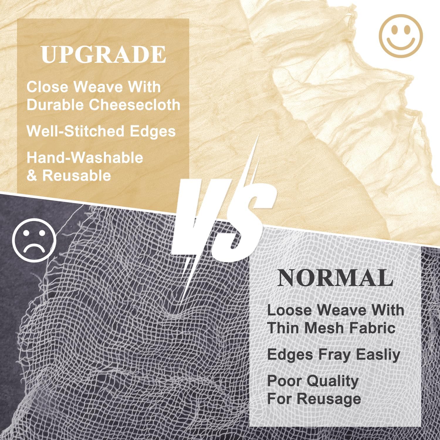 - 【Cheesecloth Table Runner】 Size: 35" W x 120" L. You will get 4 pieces 10FT length cheesecloth table runner. The sheer rustic table runner is long enough to span a large table and drape gracefully across the table. It will gently sway in the wind, adding a romantic atmosphere to your occasion. These eye-catching gauze table runners are ideal for arranging an elegant, stylish tablescape.