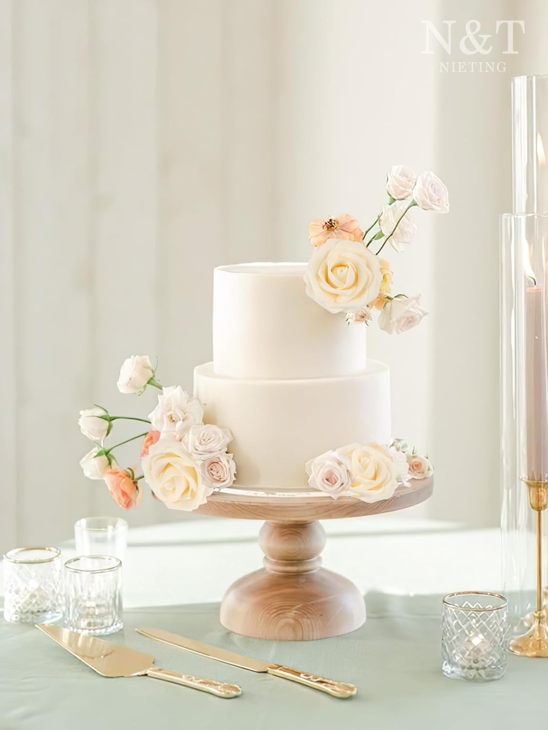 N&T NIETING Roses Artificial Flowers, 50pcs Fake Flowers Foam Roses for DIY Wedding Bridal Bouquet Baby Shower Party Cake Wall Decoration, Cream