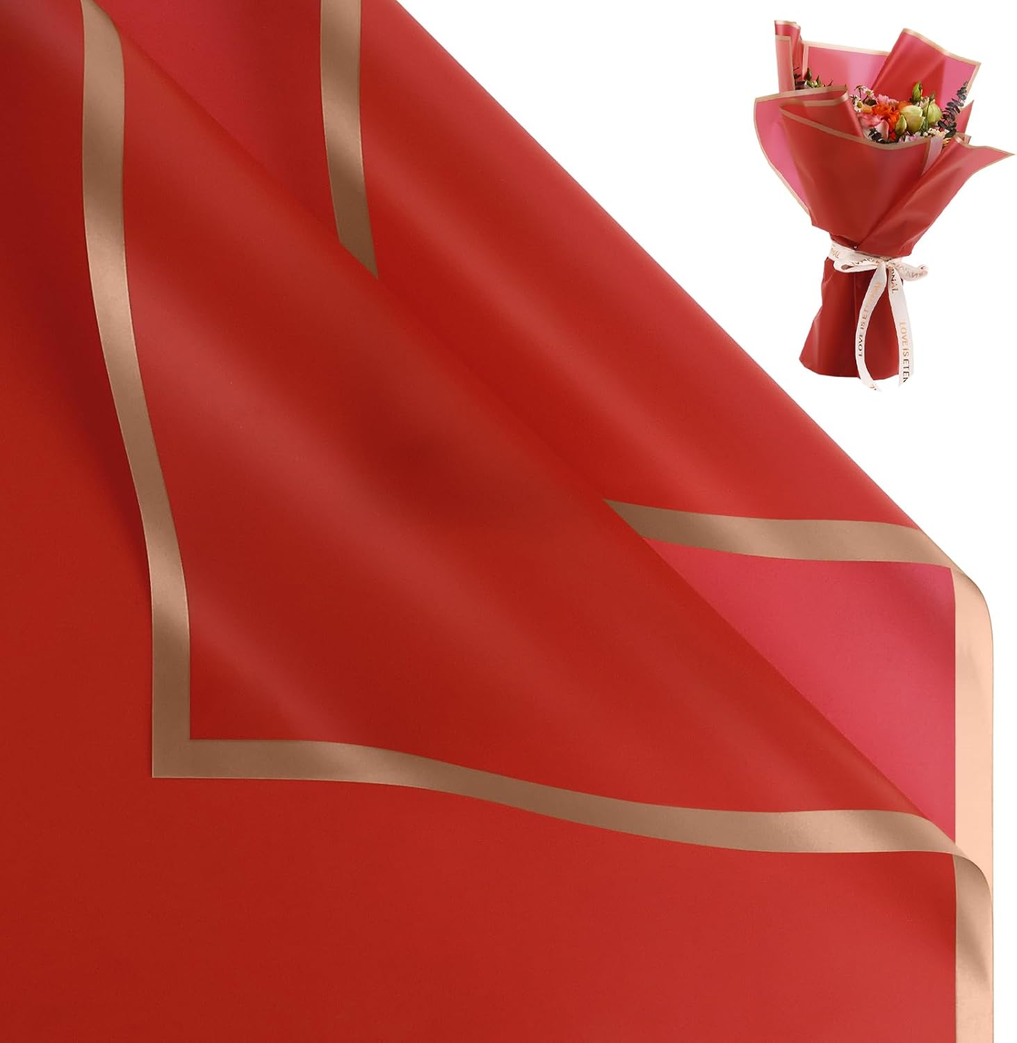 - ăElegant DesignăThe florist paper is designed with gold edges, features glossy and vibrant colors, smooth and comfortable to touch. The lightweight and sturdy nature of the paper ensures a professional and exquisite appearance,Is the perfect choice for bouquet packaging and gift box packaging
