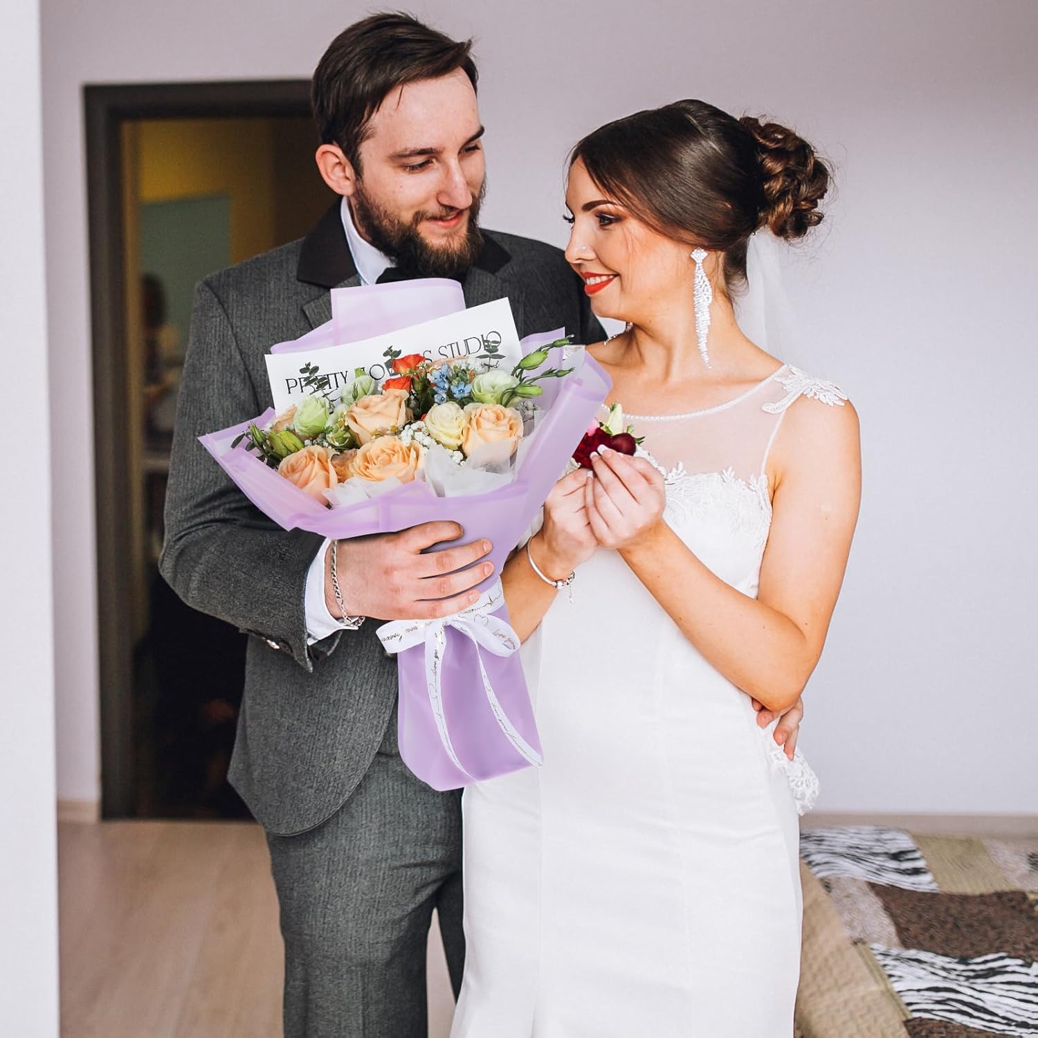 - 【Elegant Design】Using classic semi transparent material, the edges are designed in lilac purple color with a frosting, smooth and comfortable to touch,makes wrapping paper more noble.
