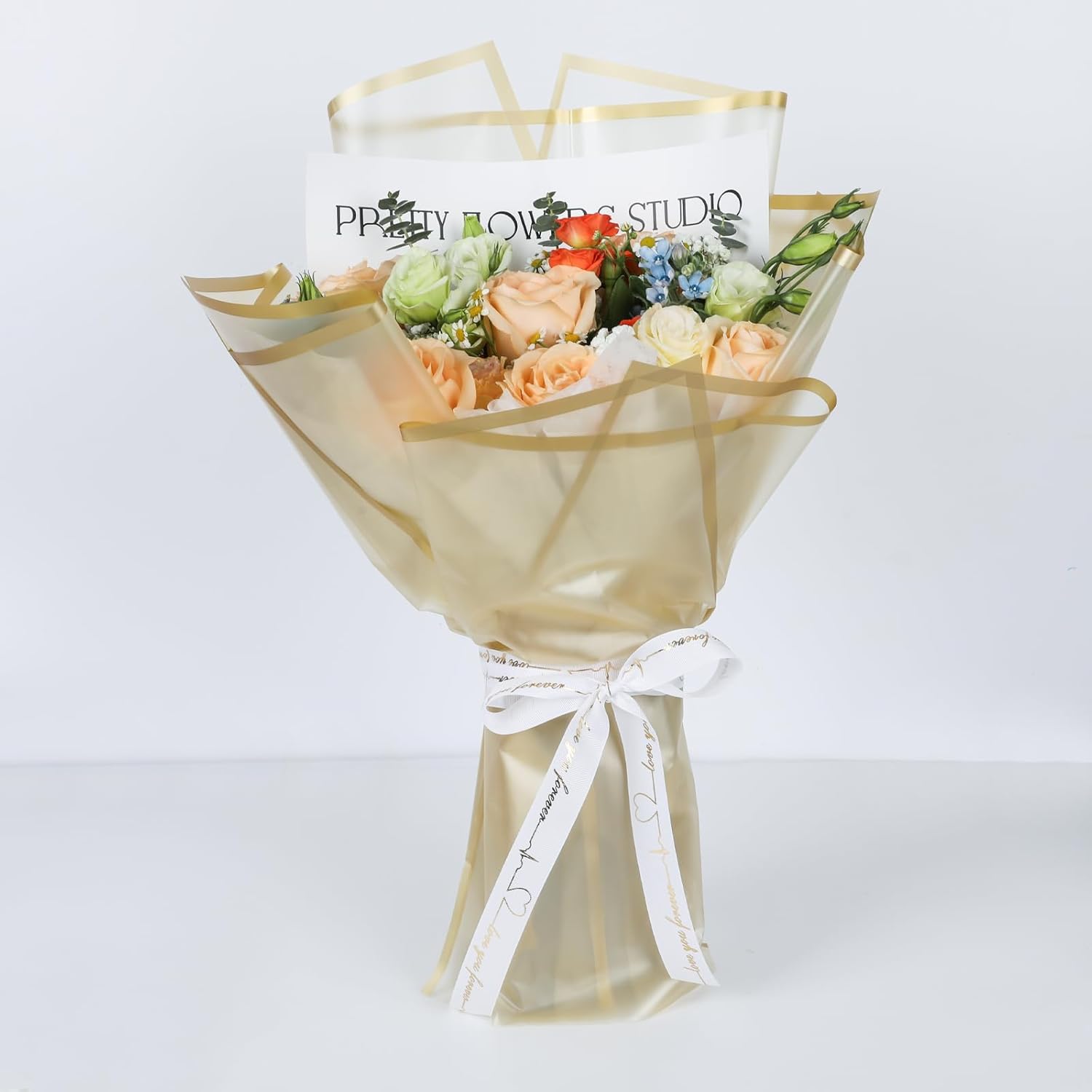 NESCCI 20 Sheet Flower Wrapping Paper - Waterproof Floral Bouquet Wrapping Paper, Florist Supplies Packaging Paper for Wedding Birthday Gift DIY (Translucent Gold)