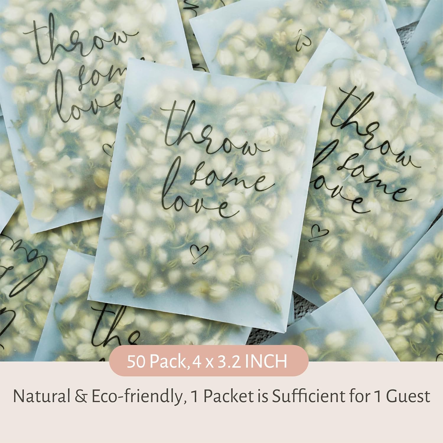 - "THROW SOME LOVE" - HEARTFELT MESSAGE, CHARMING DESIGN: Elevate your wedding exit with our exclusive “Throw Some Love" message confetti packets. Each toss becomes a heartfelt expression, spreading love and joy to the newlyweds and guests.