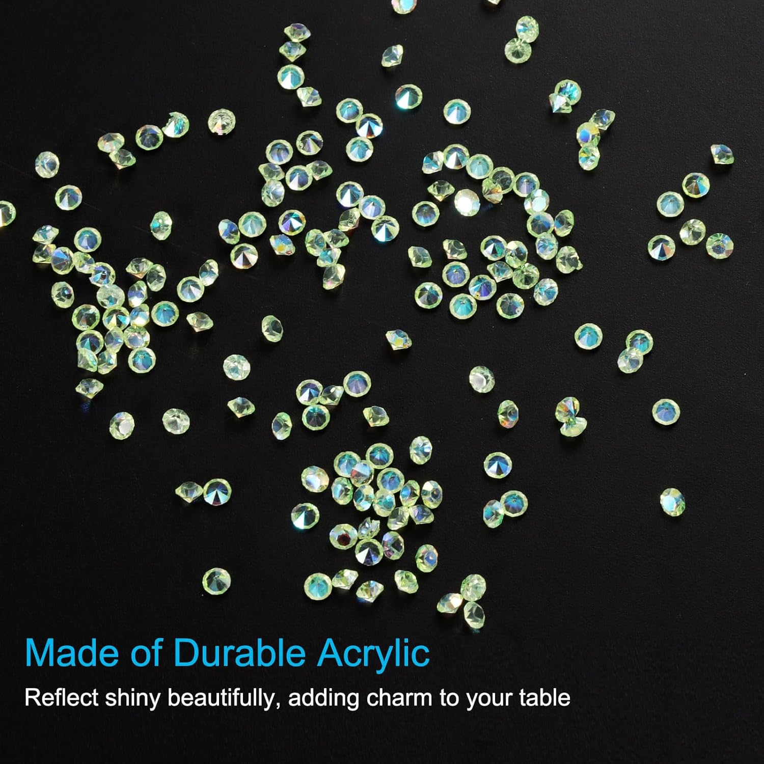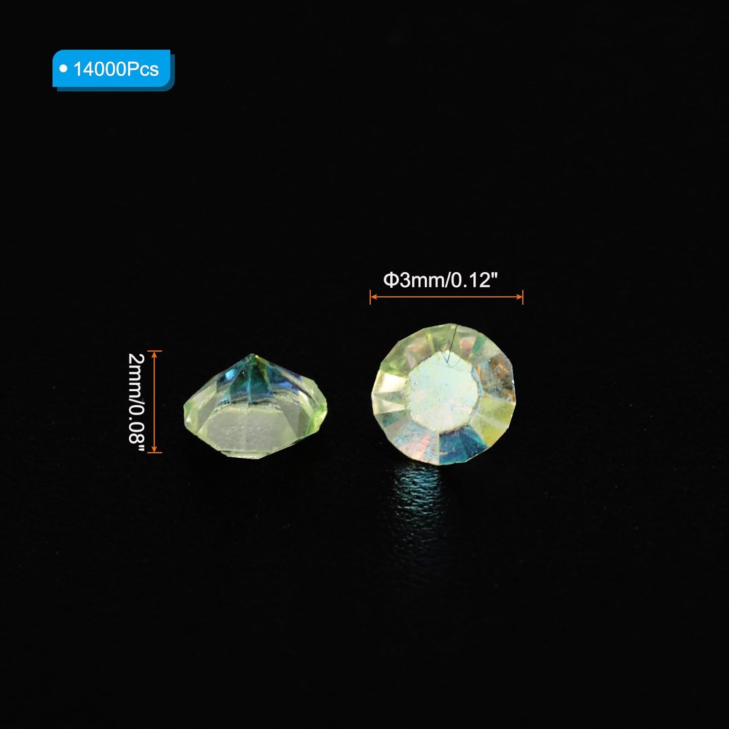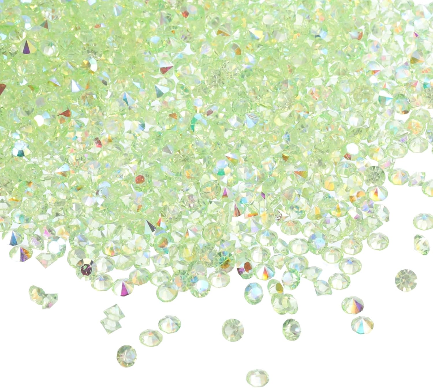 - Color: Light Green AB; Material: Acrylic; Size: 3mm x 2mm/ 0.12 x 0.08 inch (Dia.x H); Packing List: 14000Pcs x Acrylic crystal diamonds