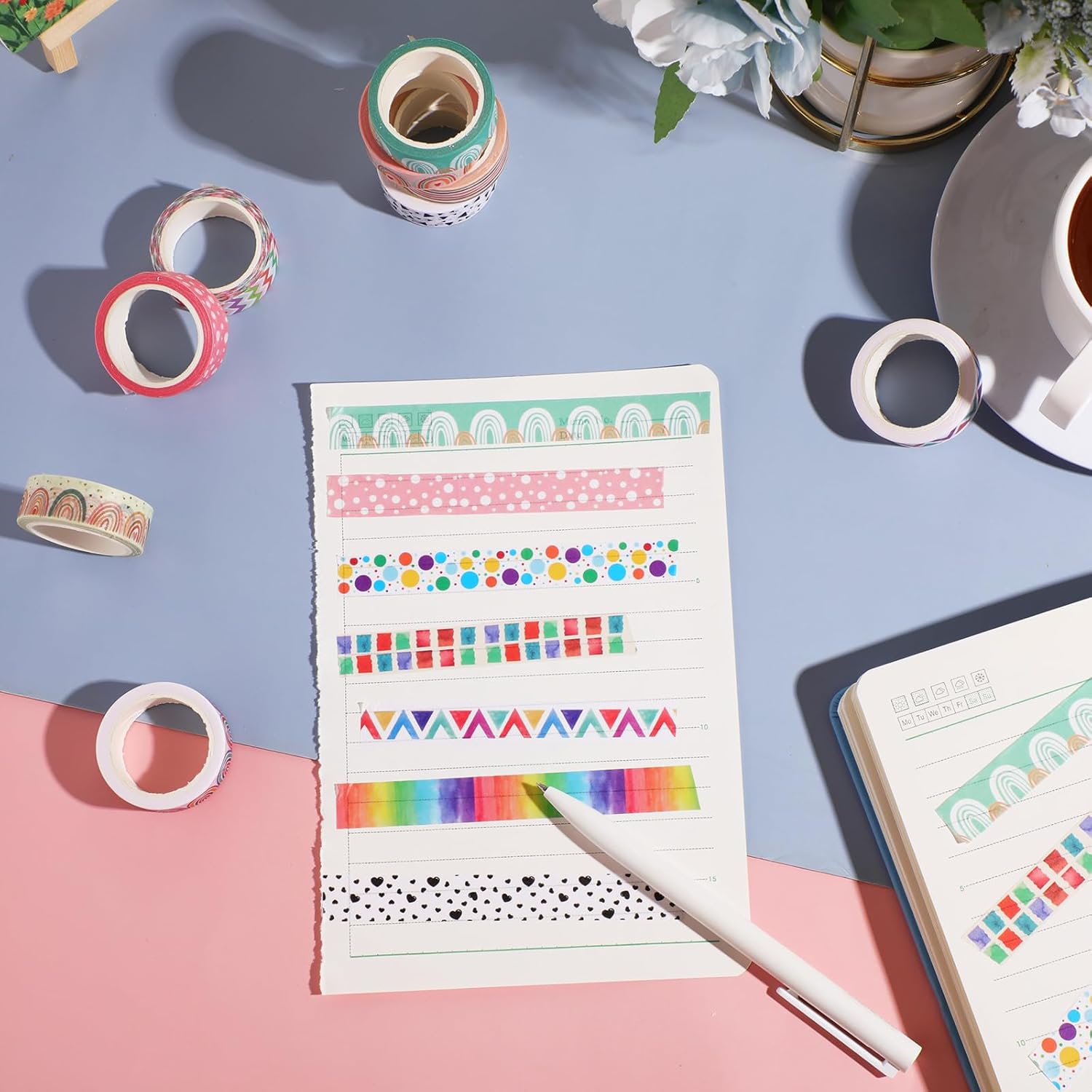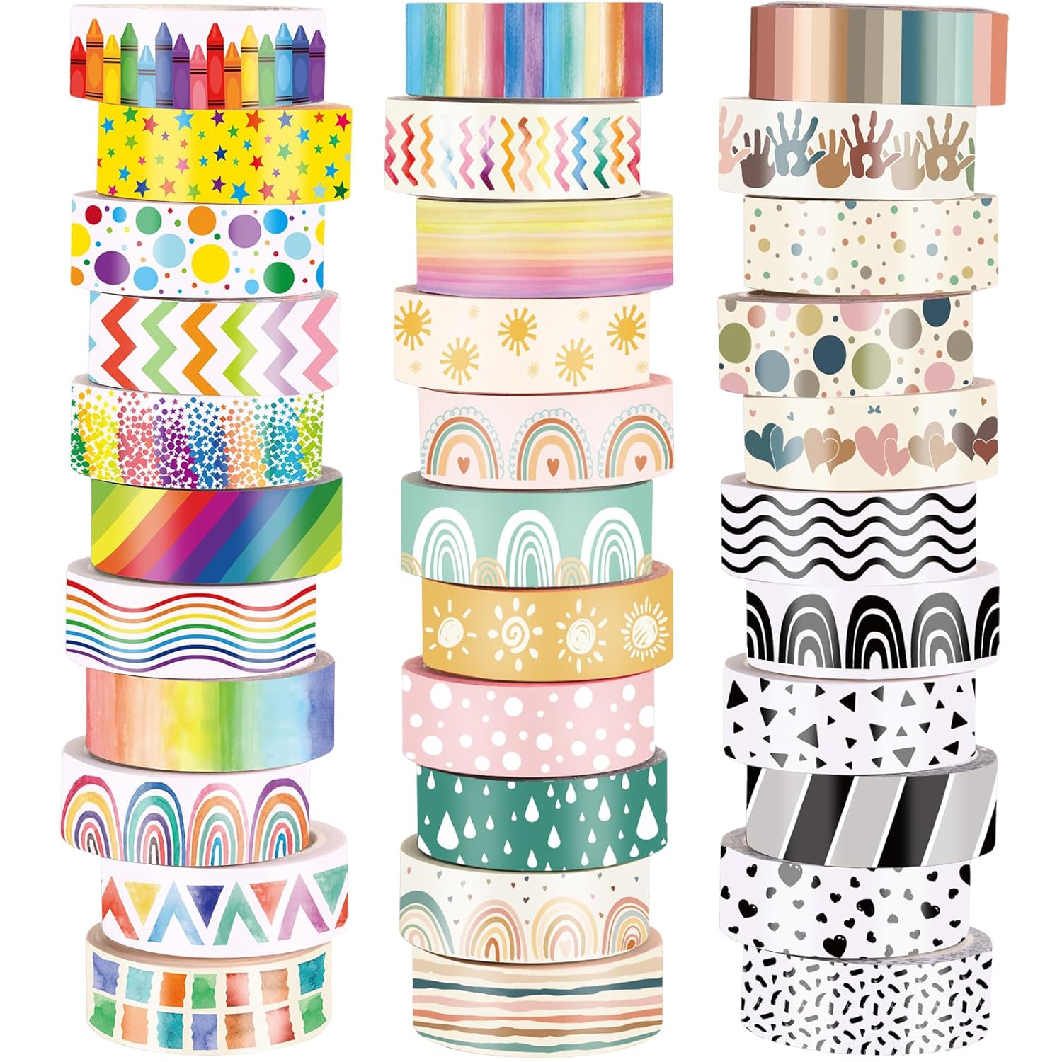 - Classic Festivals Elements: these washi tape stickers are characterized by various patterns, such as rainbow, sun, and many other elements, classic and vivid in patterns, sufficient to meet various festival decorations