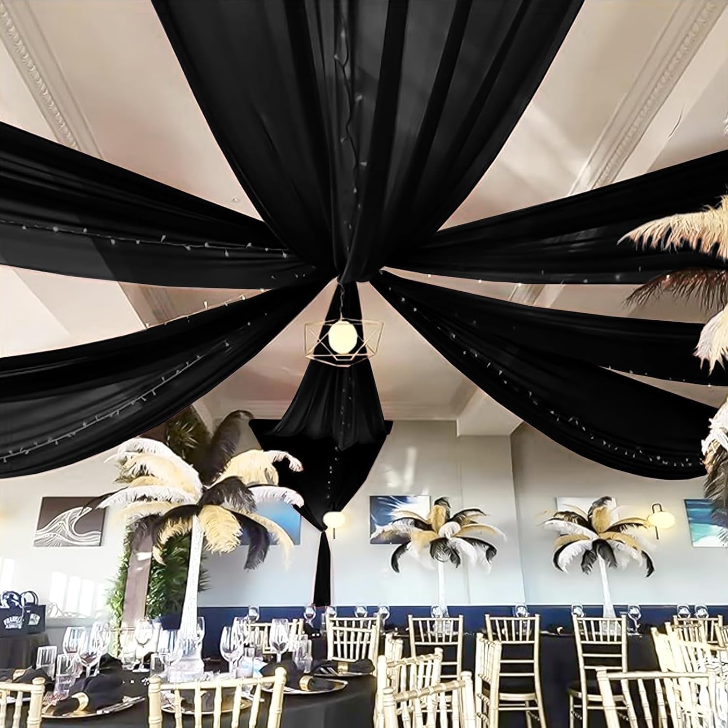 6 Panels Black Ceiling Drapes for Wedding 5ftx10ft Chiffon Fabric Arch Draping Curtains Sheer Drapery for Party Ceremony Birthday Baby Shower Reception Stage Swag Ceiling Decorations