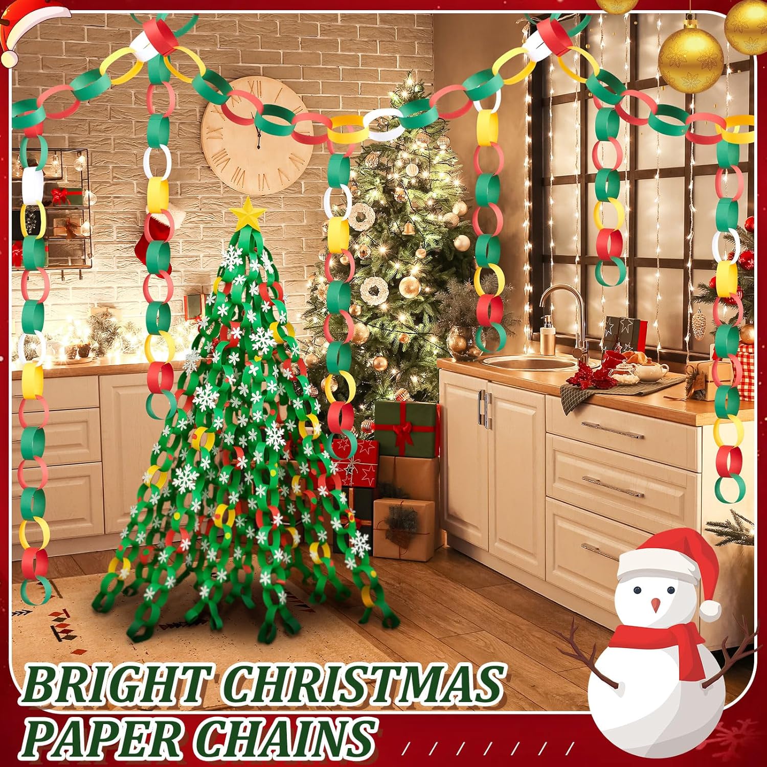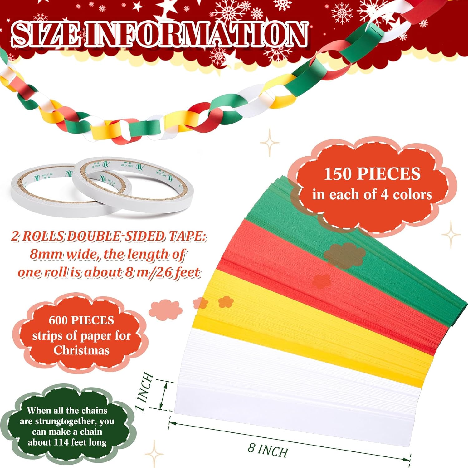 Lincia 600 Sheet Halloween Paper Chain Garland, Construction DIY Crafts Chain Strip for Fall Thanksgiving Party Decor, 1x8 Inch with Double Sided Tape (Christmas)