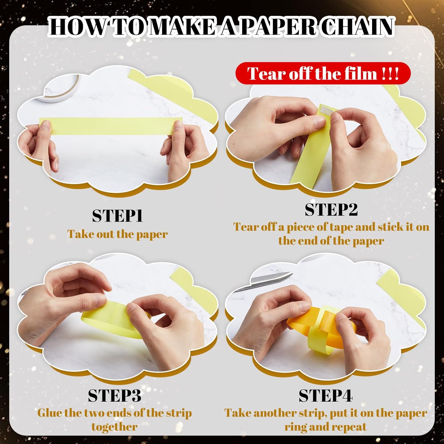 - Worry Less Crafting Experience: crafting has never been easier with our DIY paper chain strips that equipped with sticky tape; You just need to stick the 2 ends of the paper together with the tape, match the color as you like, ring by ring, and you will get an exquisite handicraft, without complex or dangerous procedures; You can quickly turn your ideas into reality without the stress of sourcing for additional crafting materials