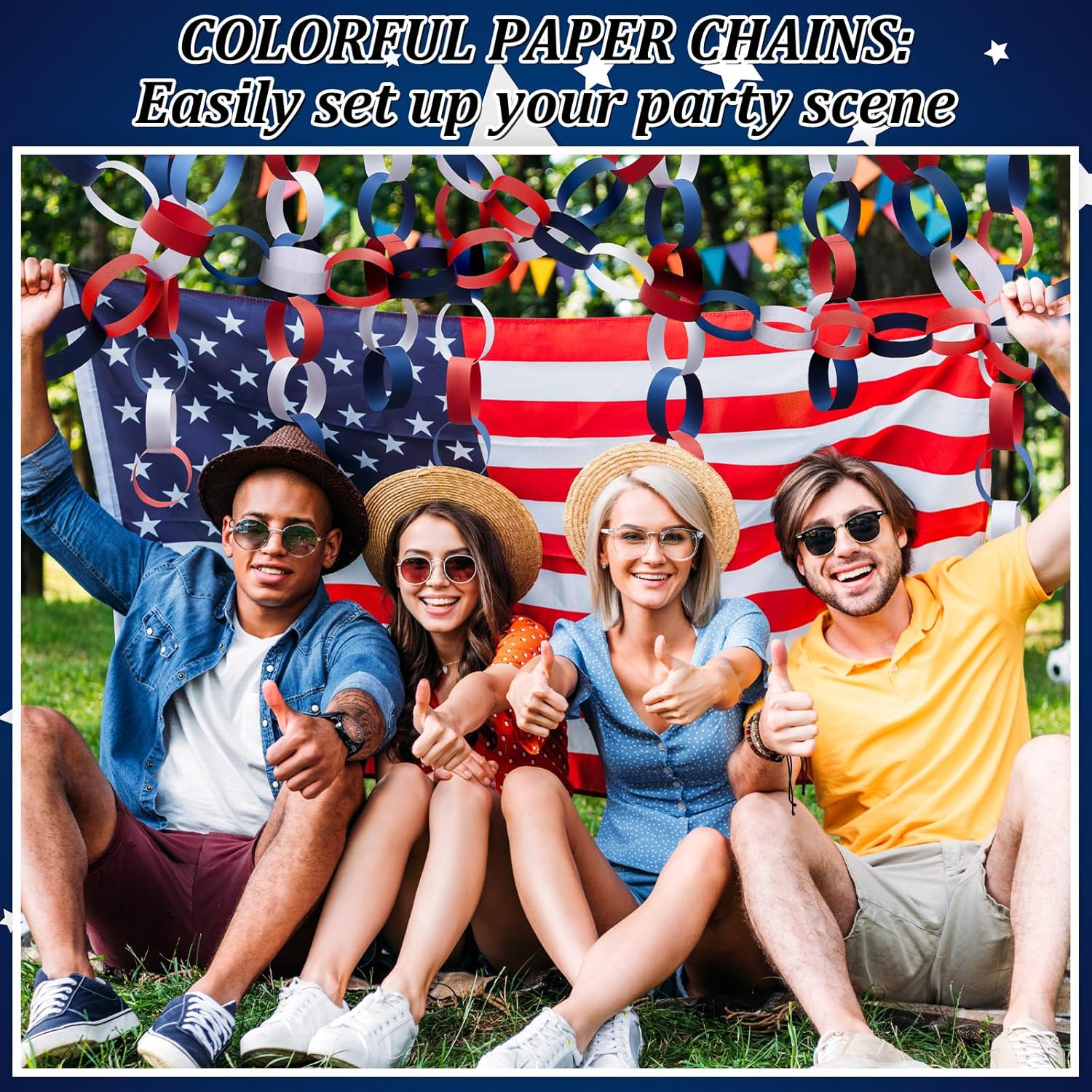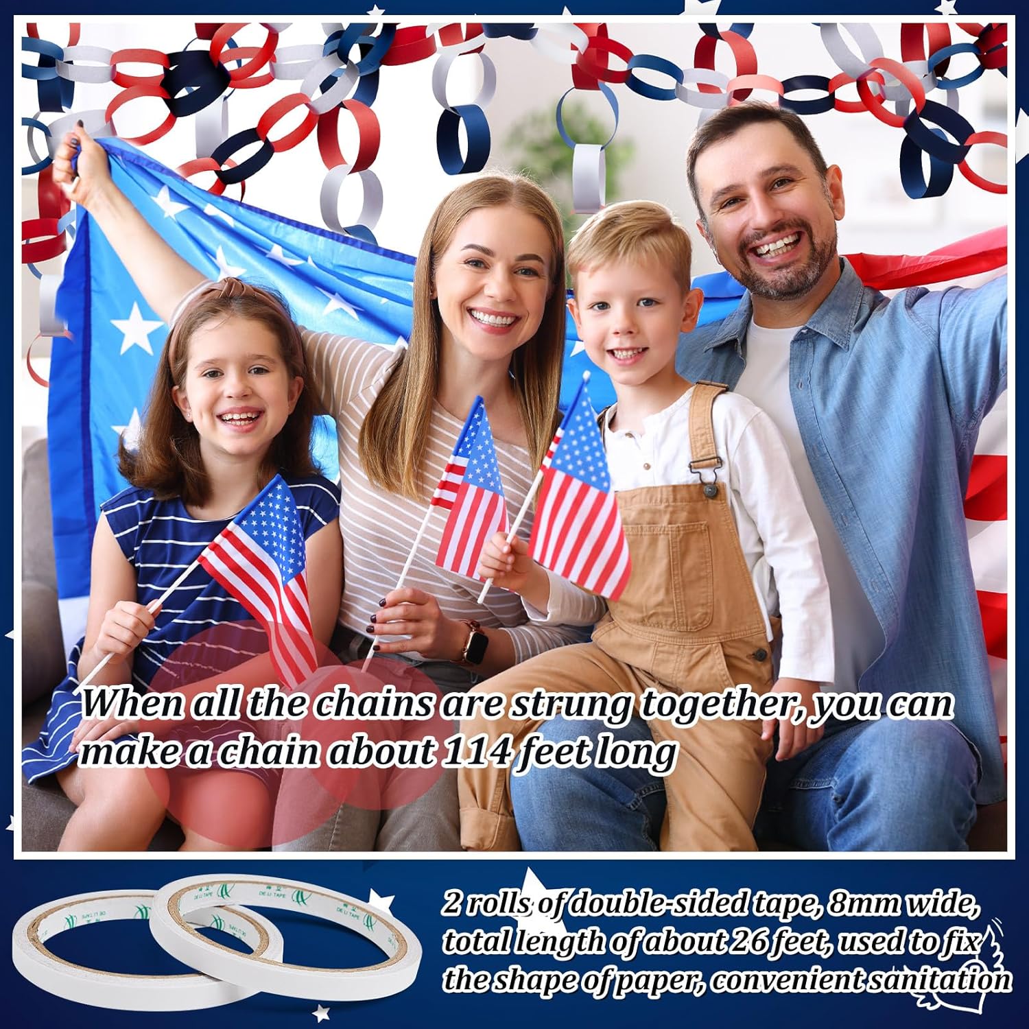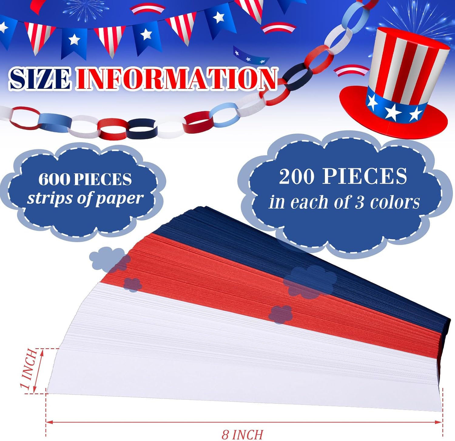 Lincia 600 Sheet Halloween Paper Chain Garland, Construction DIY Crafts Chain Strip for Fall Thanksgiving Party Decor, 1x8 Inch with Double Sided Tape (Independence Day)