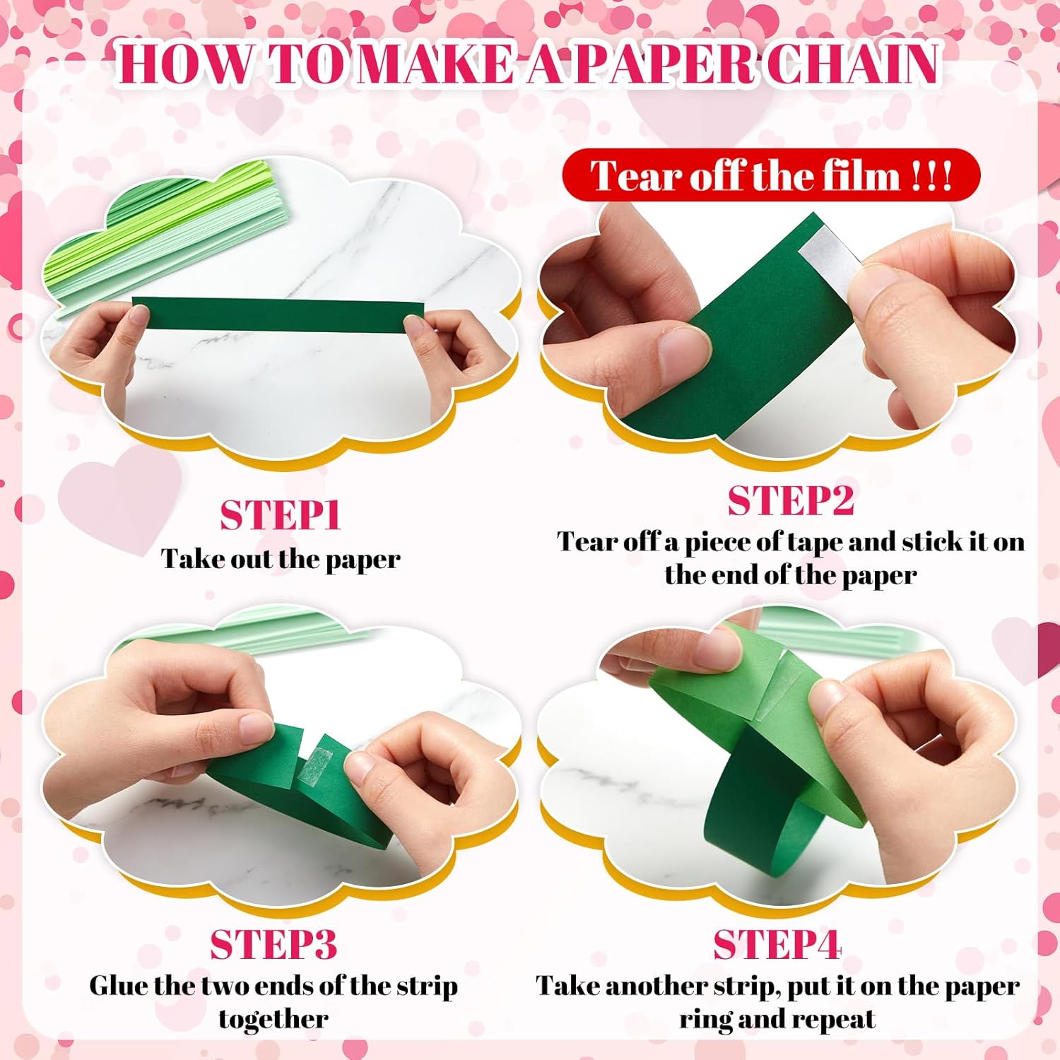 - Worry Less Crafting Experience: crafting has never been easier with our DIY paper chain strips that equipped with sticky tape; You just need to stick the 2 ends of the paper together with the tape, match the color as you like, ring by ring, and you will get an exquisite handicraft, without complex or dangerous procedures; You can quickly turn your ideas into reality without the stress of sourcing for additional crafting materials
