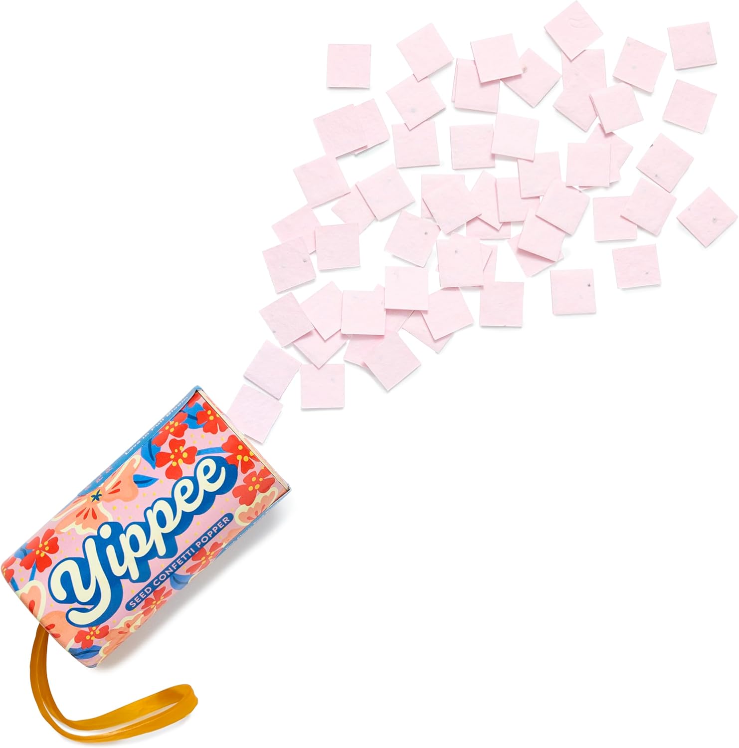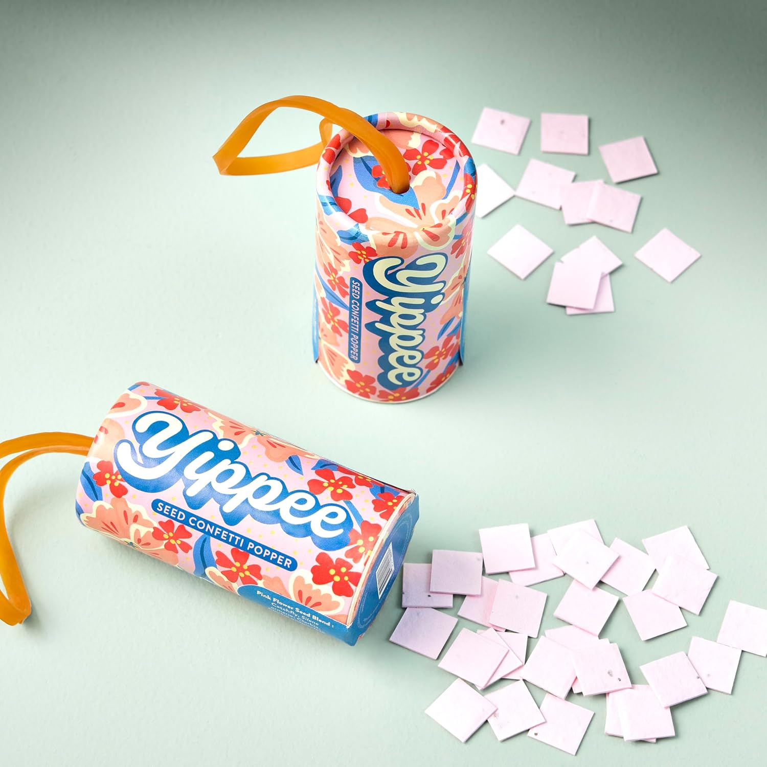 Modern Sprout Seed Confetti Poppers with Flower Seeds - Party Favors for Outdoor Wedding, Birthday & Parties - Non-Toxic, Plastic-Free & Pollinator Safe Plantable Seed Paper - Pink Yippee (Pack of 12)